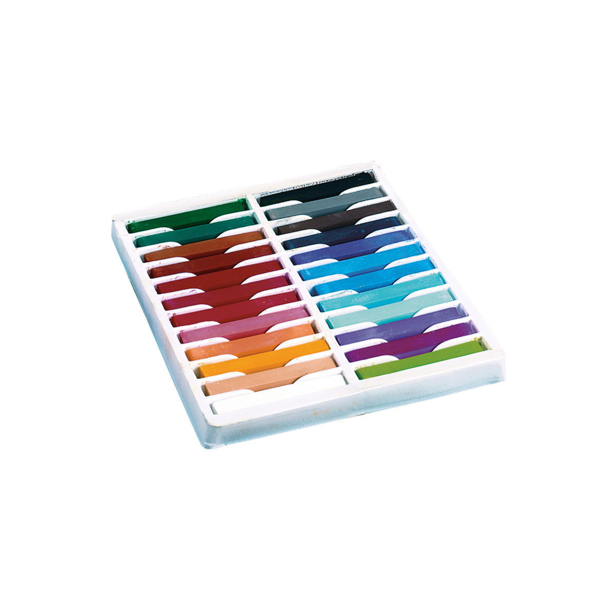 High concentrations of the finest pigments and pure calcium carbonate provide a rich velvety texture. Strong, brilliant, clean colors in a variety of different palette options. These sticks are 2.5" long x 0.38" x 0.38". Each pack contains 24 pastels in assorted colors.