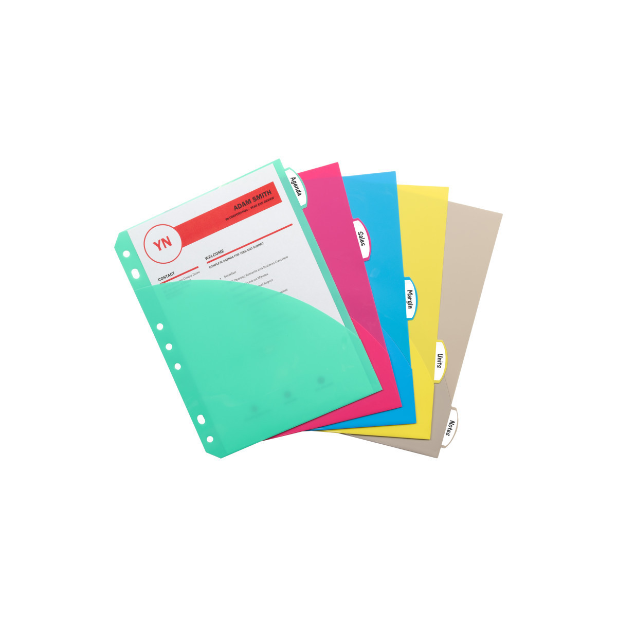 Although mini in size, this item has proved to offer large organizational benefits. The dividers come in an colorful assortment of five dividers. The double-sided, easy-load slant pockets allow for extra storage of documents and media. Each set includes write-on tab labels to help identify the sections within the binder. The assortment of colors and storage options allows individuals to customize their binders to organize documents as they prefer. The versatile dividers are 7-hole punched, allowing them to fit in standard 3-ring 5 1/2 x 8 1/2, 6 x 9 or 8 1/2 x 11 binders. On-the-go organization is easy with C-Line's document storage additions! Note: If using a day planner, please check the actual product dimensions and hole punch configuration; does not work with all day planner systems.