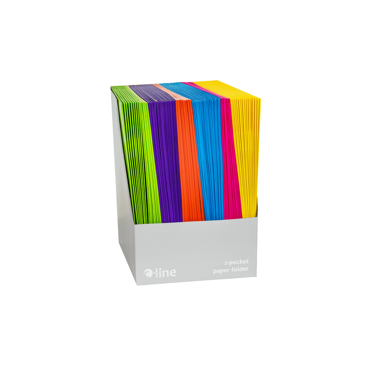 Two-pocket paper portfolios/folders with 3-hole punch hold papers and resist tearing. Laminated, high-gloss finish catches your eye. Vibrant colors let you organize by subject, project and more! Great for school, home or office. Folders feature 3-hole punch with 2 business card slots. Without prongs. For 8.5" x 11" document storage. Sold as a pack of 100 in assorted colors: Bright Pink, Yellow, Orange, Blue, Lime Green and Purple.