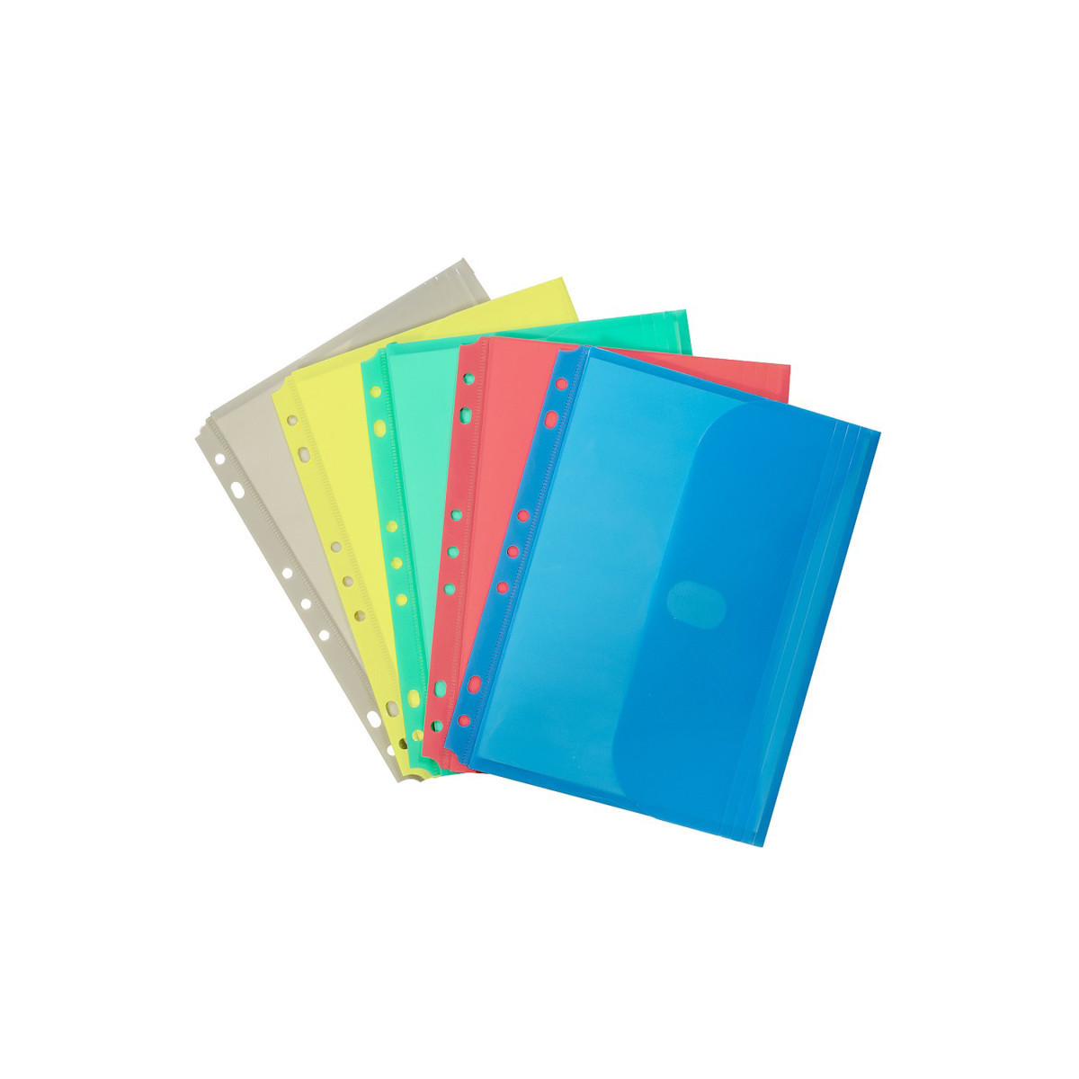 Although mini in size, these mini size binder pockets have proved to offer large organizational benefits. A smaller version of C-Line's current offering, the binder pocket has a hook and loop closure to secure loose items inside, while having the ability to expand up to 1/2 inch in size to increase capacity. The side loading pocket is prepunched, which allows it to fit into standard 3-ring 5 1/2 x 8 1/2, 6 x 9, and 8 1/2 x 11 binders. Assorted colors include Seaside Blue, Sunny Yellow, Seafoam Green, Sunset Red, and Sandy Gray (no color choice). On-the-go organization is easy with C-Line's document storage additions! Note: If using a day planner, please check the actual product dimensions and hole punch configuration; does not work with all day planner systems.