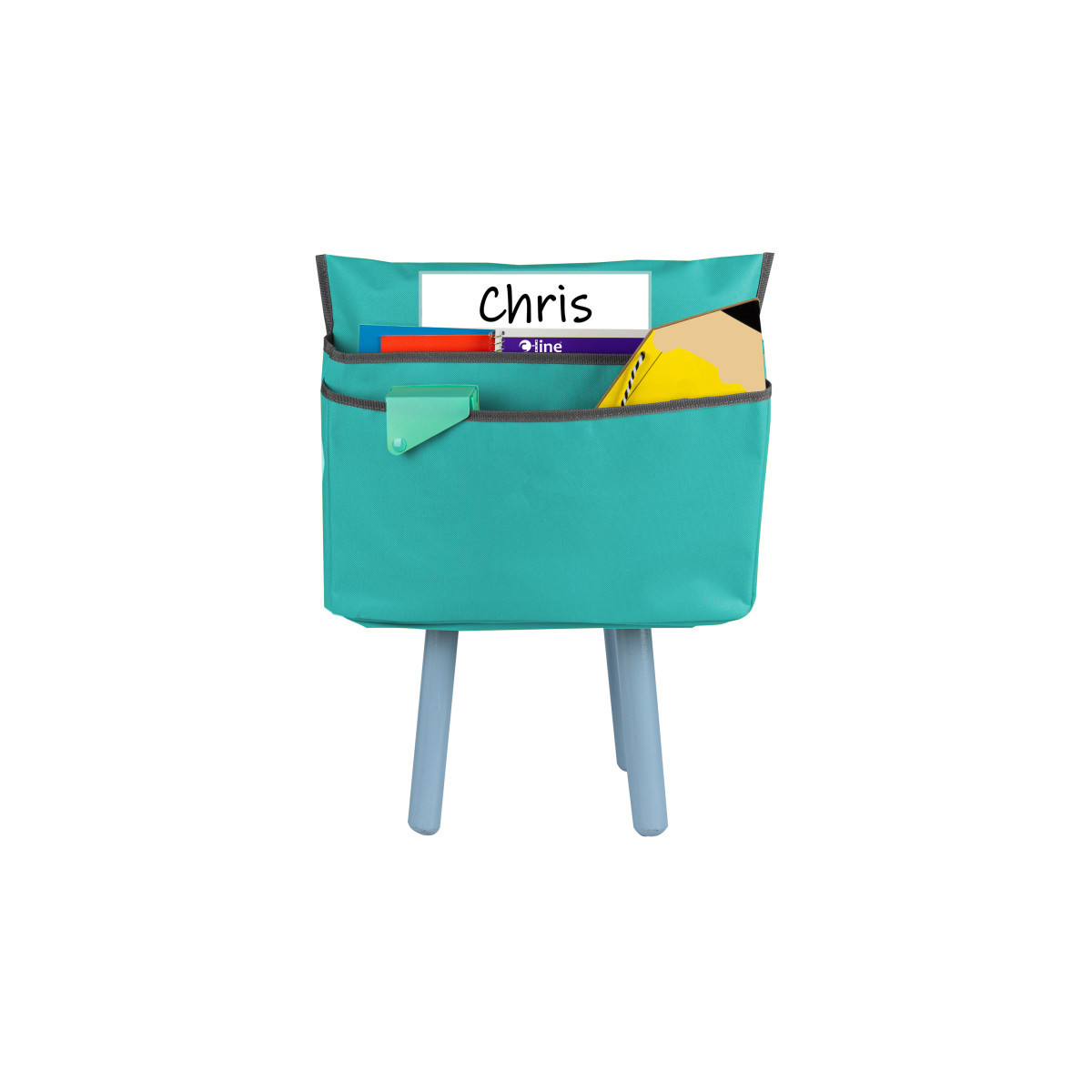 Personalize the holder by inserting a name card into the vinyl pocket that is stitched to the top of the Chair Cubbie™