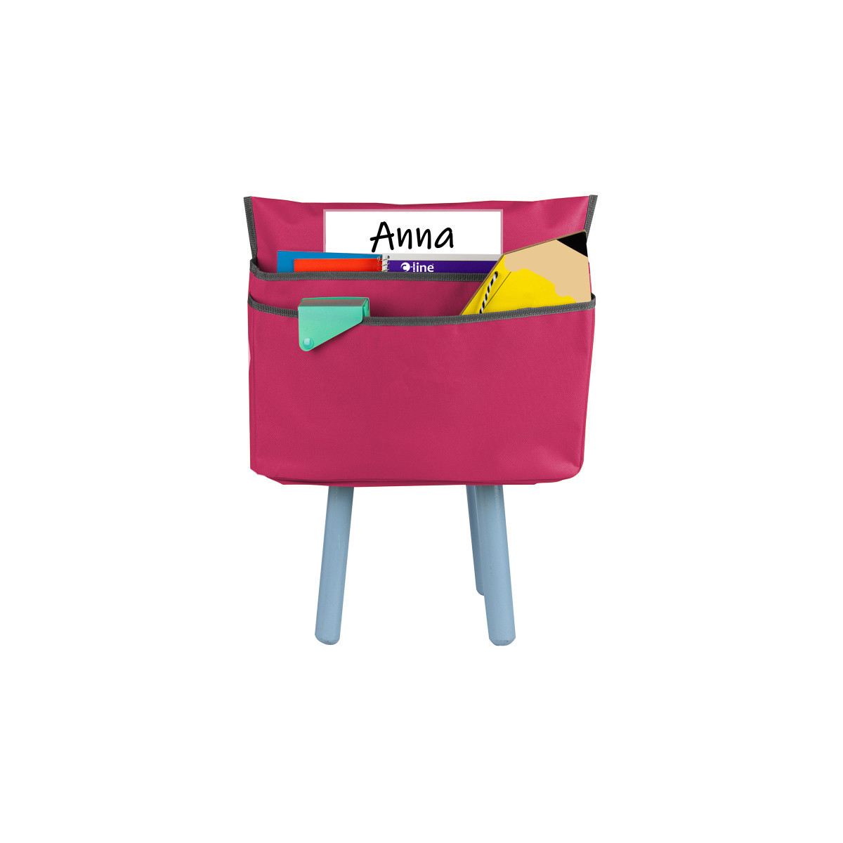 Personalize the holder by inserting a name card into the vinyl pocket that is stitched to the top of the Chair Cubbie™