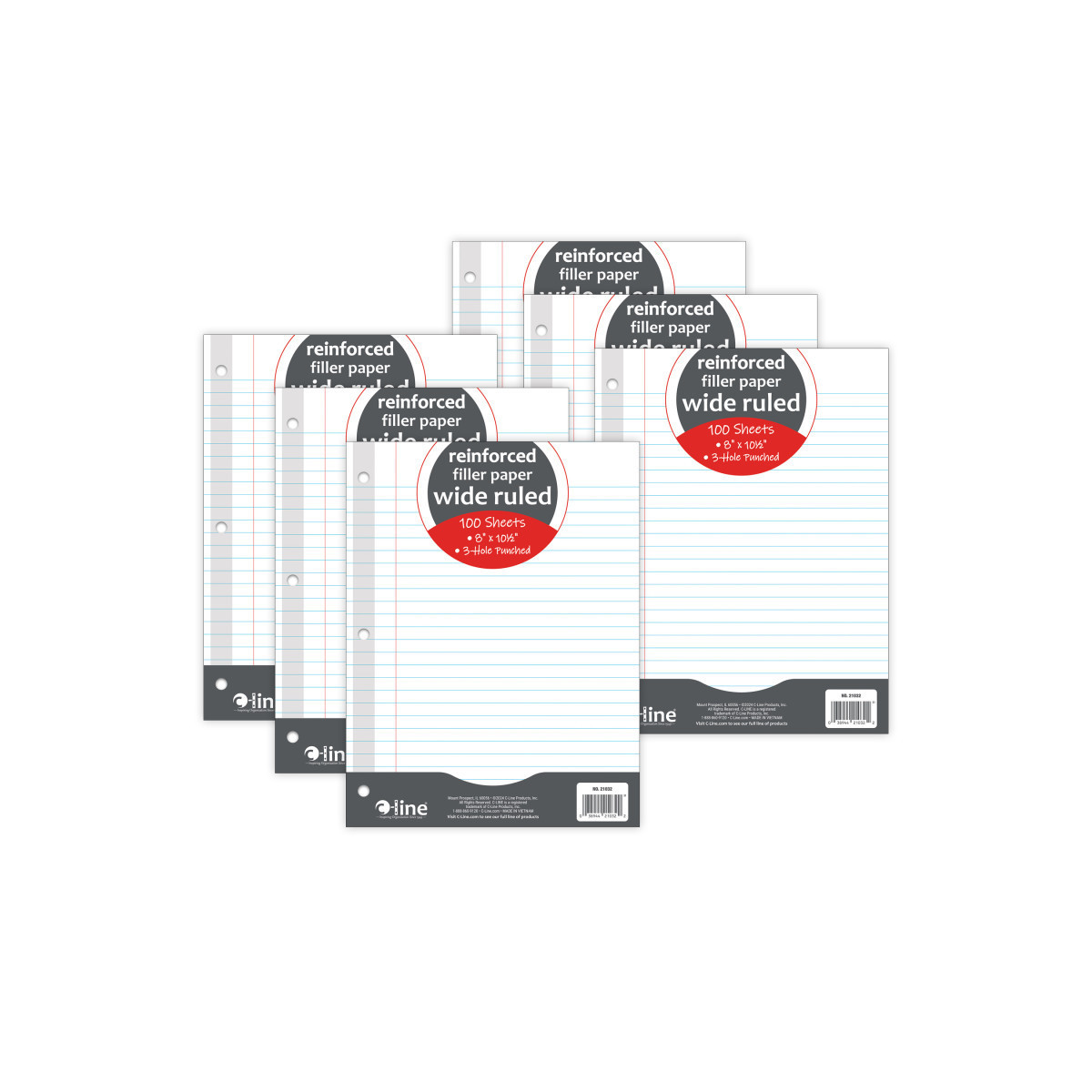Reinforced Filler Paper lets you instantly create writing space in binders and folders. The reinforced holes add extra protection and help keep papers from tearing out of binders with heavy use. Perfect for students and professionals, these durable pages can be used to record everything from class notes to documenting weekly to-do lists. Wide ruled format, bright white paper is lined with margin space to allow for neat writing. Pages measure 8" x 10-1/2" in size so they can easily be inserted in all letter-size folders, files, and binders. Bright white paper has blue handwriting lines with a red margin divider. Each pack includes 100 sheets. Sold as 6 packs for a total of 600 sheets.