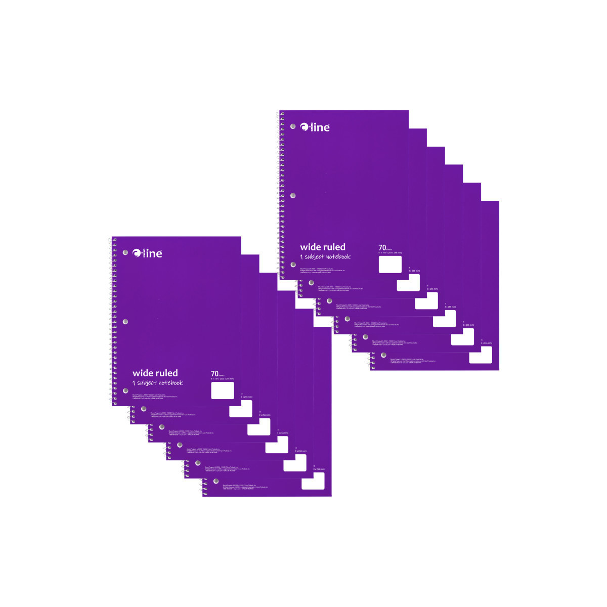 Instantly create writing space in binders and folders, by inserting the Spiral-Bound 1-Subject Notebook. Perfect for students and professionals, these notebooks feature a durable cover that helps protect the content written on the pages inside. Wide ruled format: the bright white paper has blue handwriting lines with a red margin divider to allow for neat writing. Solid colored front cover adds style to notebooks, while also making it easy to organize projects or classes by color. Attach this 3-hole punched spiral notebook into a standard 3-ring binder to create the ultimate organizational tool that keeps all your notes and hand-outs in one place. Perforated edges reduce paper waste by allowing pages to tear out neatly. 70-page spiral bound notebook. Colored front cover, gray board back cover. Purple. Sold as a pack of 12.