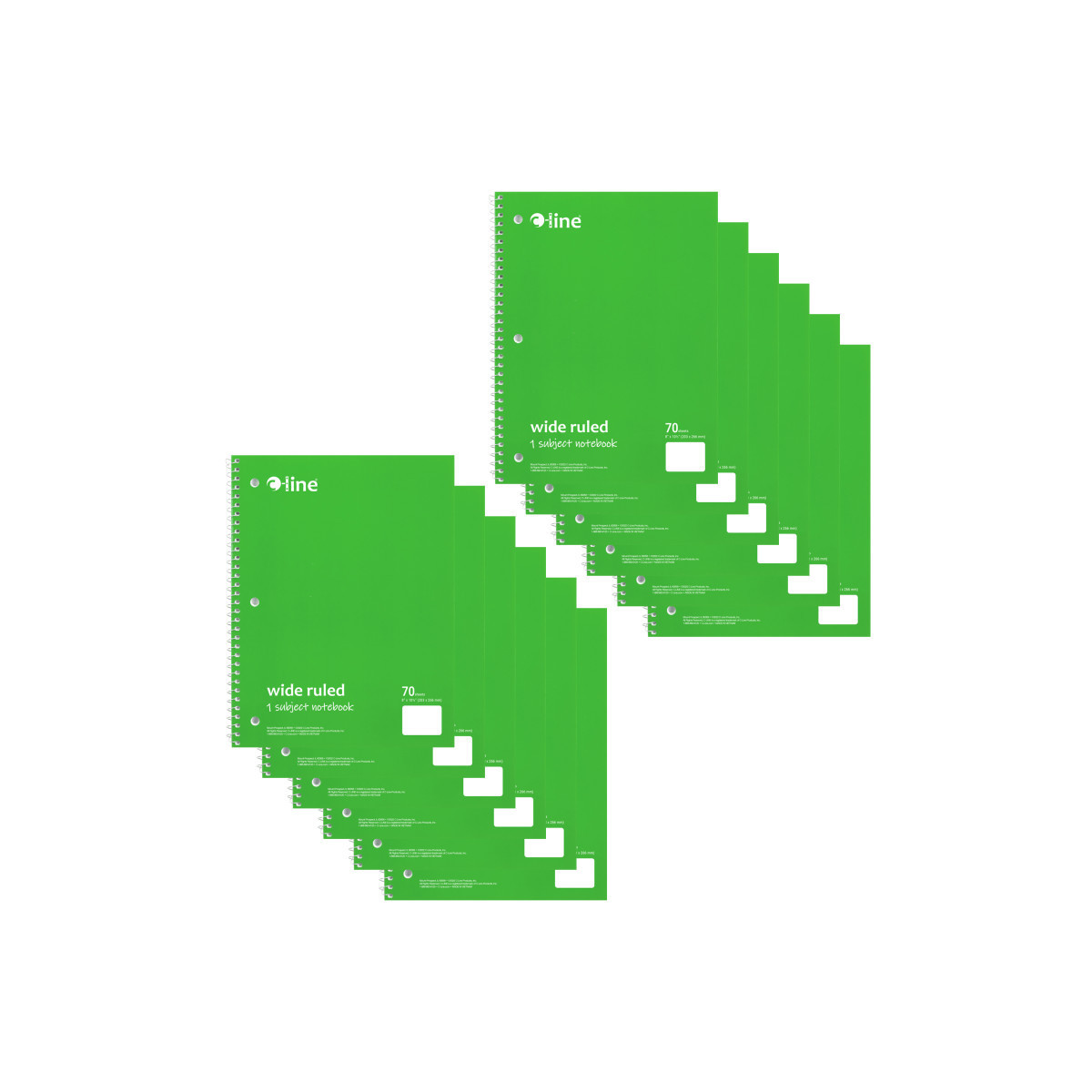 Instantly create writing space in binders and folders, by inserting the Spiral-Bound 1-Subject Notebook. Perfect for students and professionals, these notebooks feature a durable cover that helps protect the content written on the pages inside. Wide ruled format: the bright white paper has blue handwriting lines with a red margin divider to allow for neat writing. Solid colored front cover adds style to notebooks, while also making it easy to organize projects or classes by color. Attach this 3-hole punched spiral notebook into a standard 3-ring binder to create the ultimate organizational tool that keeps all your notes and hand-outs in one place. Perforated edges reduce paper waste by allowing pages to tear out neatly. 70-page spiral bound notebook. Colored front cover, gray board back cover. Green. Sold as a pack of 12.