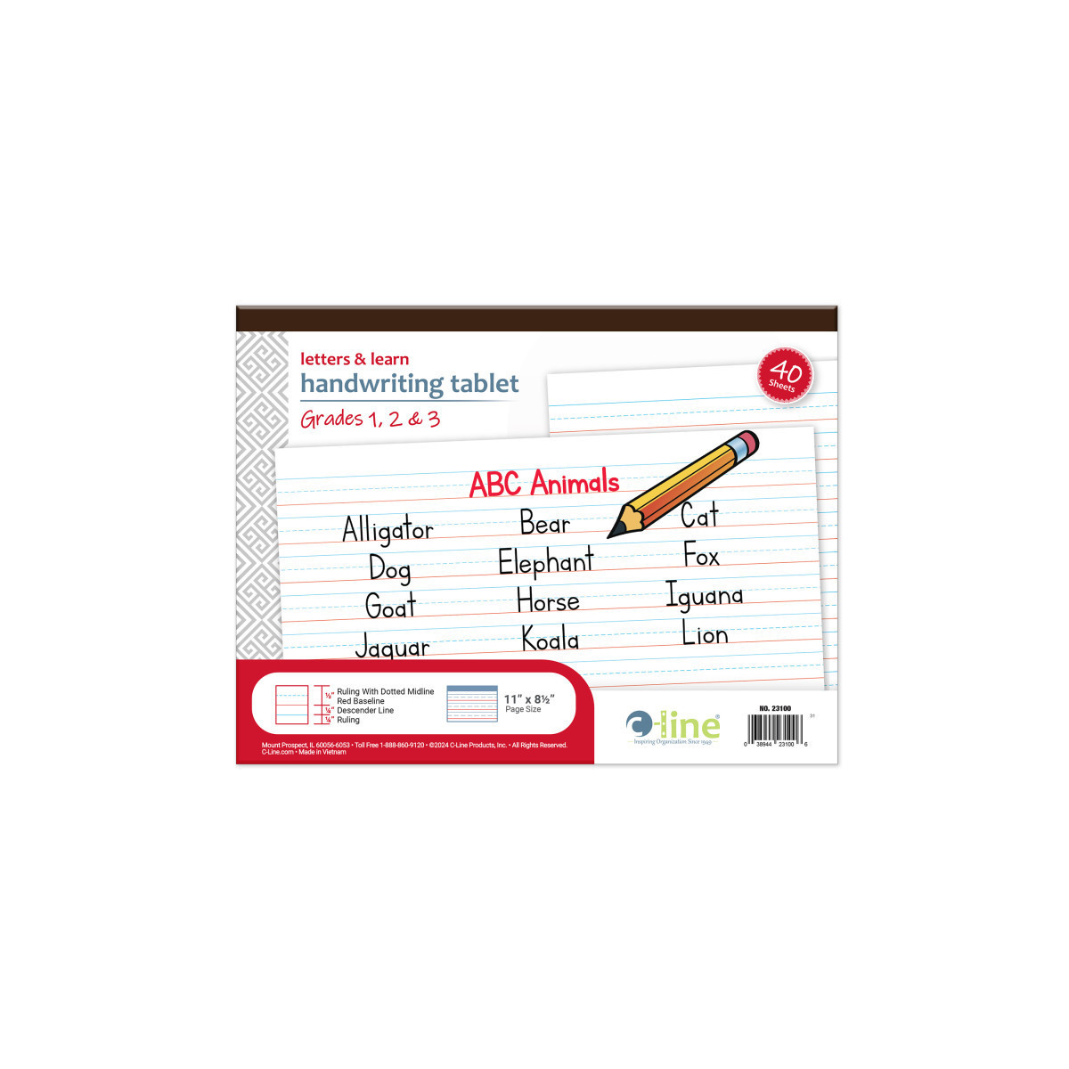 Letters & Learn Handwriting Tablets are the perfect choice for teaching young students how to write and stay within the designated guides. Handwriting paper has red baseline, blue dotted midline, and blue descender line, with 1/4" ruling. The heavy chipboard backing provides extra support when writing. These 11" x 8-1/2" Handwriting Tablets provide enough space for children to practice their writing, spelling, copying, and more. Perfect for kindergarten and elementary grades 1, 2, & 3. With 40 pages per pad, there is plenty of paper for practice. Pages measure 11" x 8-1/2" in size. Quality, white paper with black gummed top edge binding allows for easy removal of pages. Thick cardboard backing provides extra support when writing. 40 pages per tablet. Ruled on both sides.
