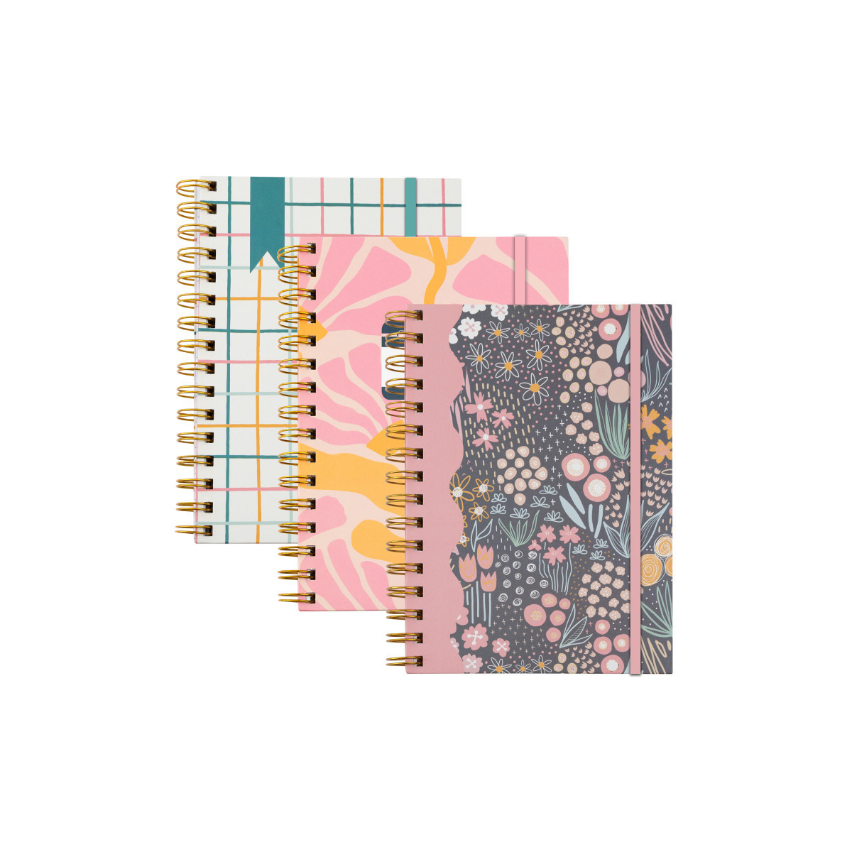 Double gold spiral binding with elastic closure to secure pages