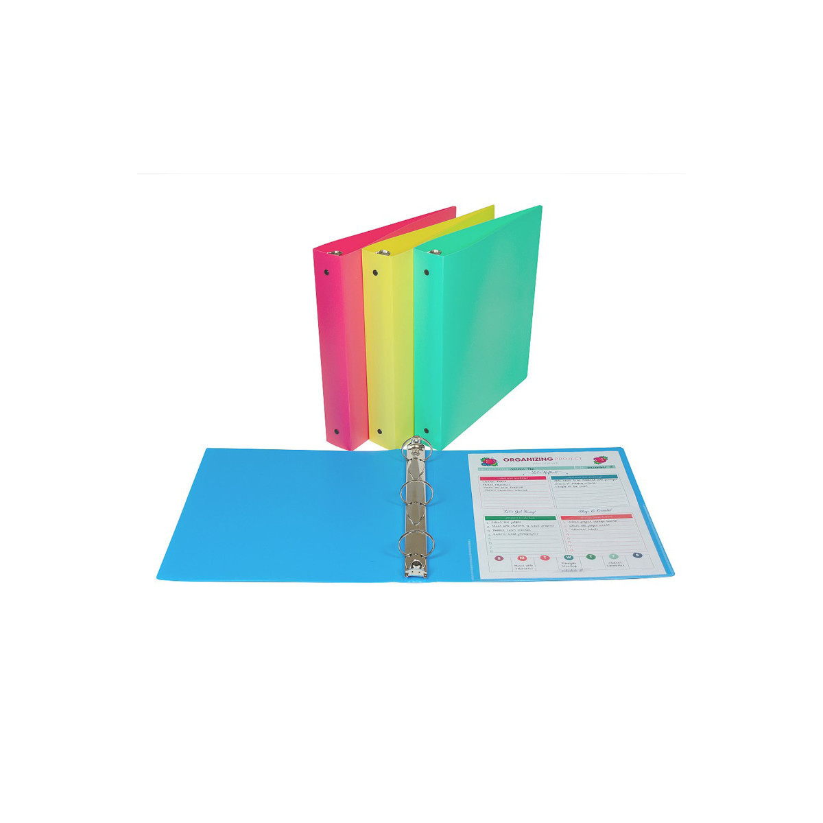 Durable polypropylene binders feature large interior pocket on the back cover for extra storage. Acid-free material protects documents and photos by eliminating the risk of photocopy transfer. 1 1/2 inch capacity. Assorted colors include Seaside Blue, Sunny Yellow, Sea foam Green, and Sunset Red (no color choice).