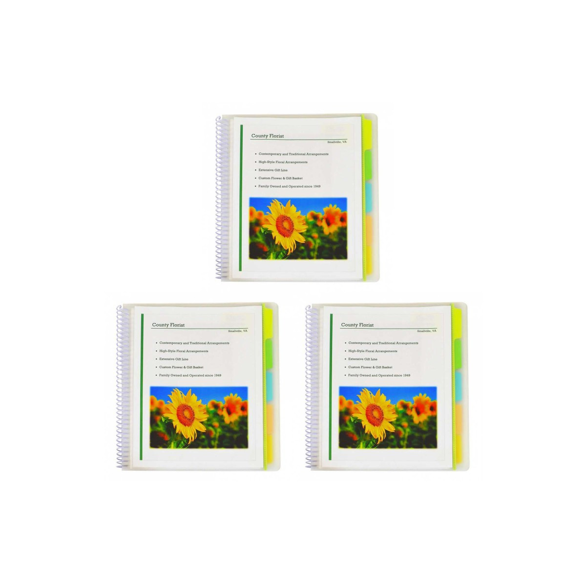 This spiral-bound organization product stores notes and documents in a protective holder. Suitable for both students and professionals, the sleek outer cover provides a stylish appearance to the portfolio. Organize projects, subjects, notes and more in one convenient place. Ten interior pockets allow for detailed organization. Write-on tabs make for quick and easy custom organization; works with pencil, ball point pen or permanent marker. Spiral-bound portfolio features clear-view front pocket for cover sheet. Made of heavyweight acid-free polypropylene. For letter size documents. Clear cover and pockets with assorted color tabs. Sold as a pack of 3 portfolios.