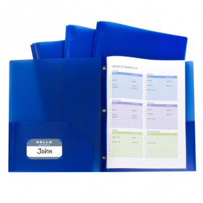 Two-pocket heavyweight polypropylene folders with three-hole punch hold papers and resist tearing
