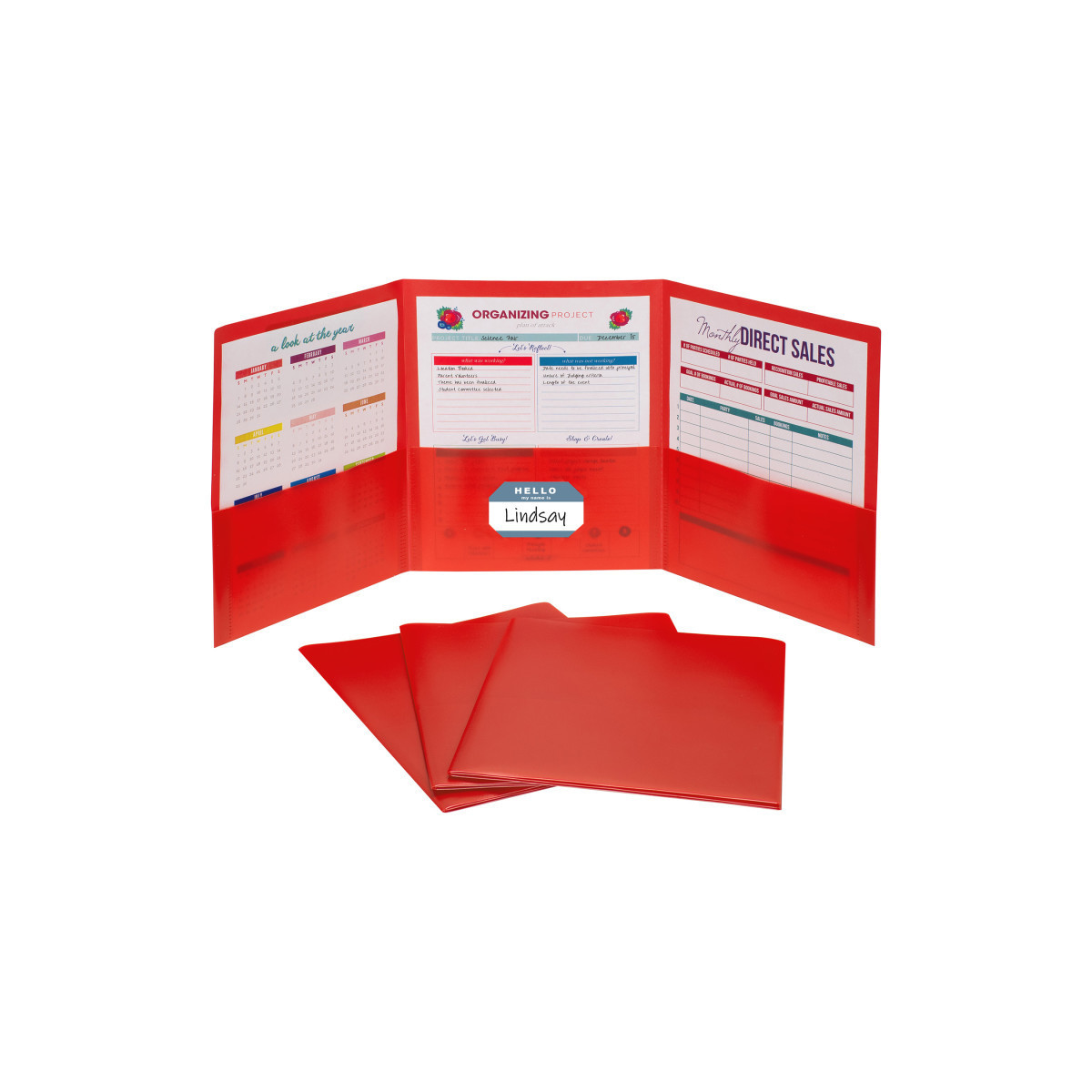 Ideal for classroom and office settings, this three-pocket folder is an essential presentation and letter-size document storage item. Made from heavyweight polypropylene material, the portfolio is the same size as a two-pocket folder when folded up. Simply pull back the front flap and the inside flap to expose all three, top-loading pockets. There is a business card holder located on the middle pocket, making it possible to personalize client presentations or class reports. Red, box of 24.