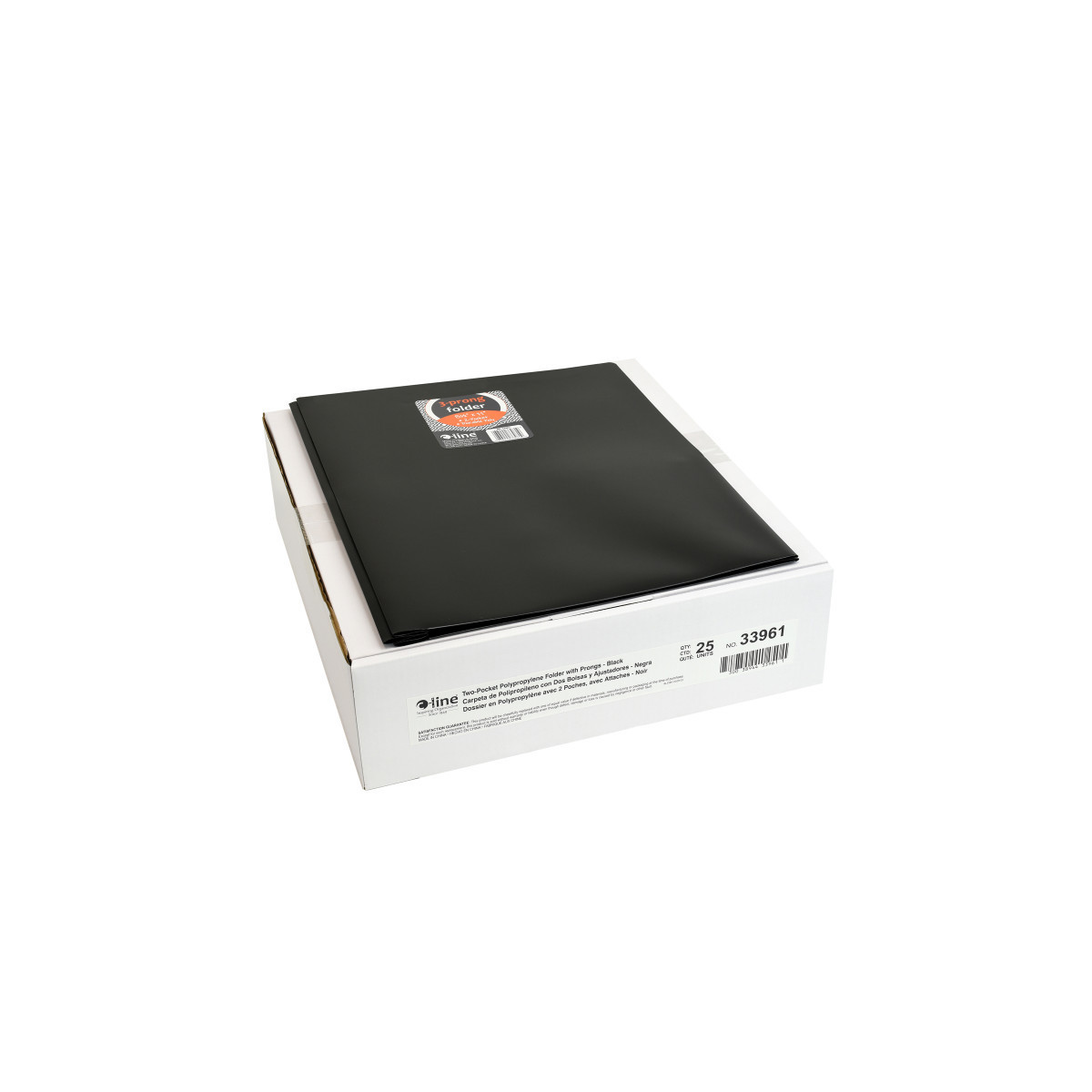 Two-pocket heavyweight polypropylene portfolios / folders hold papers and resist tearing. Features business card slot. With prongs. Black. Pack of 25.
