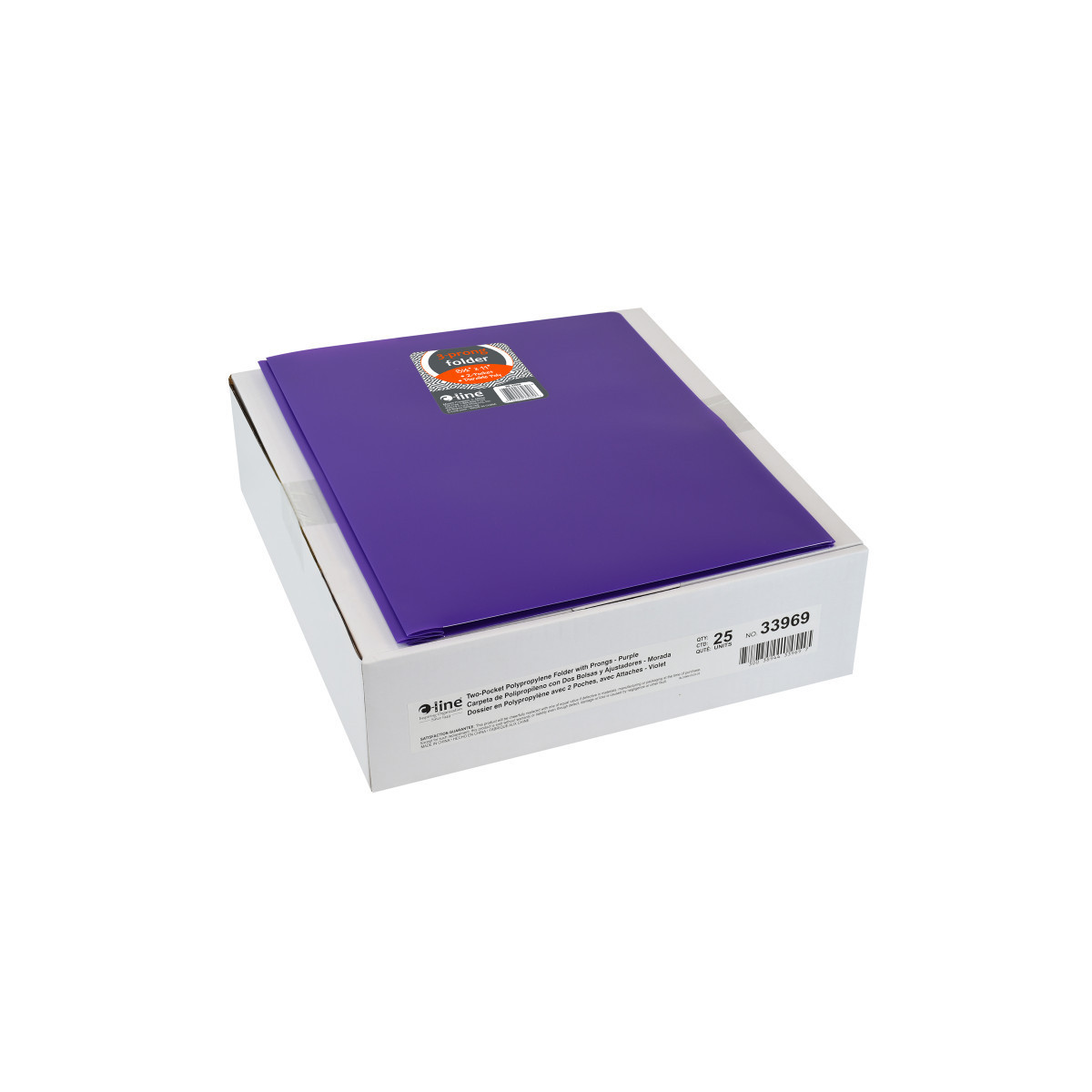 Two-pocket heavyweight polypropylene portfolios / folders hold papers and resist tearing. Features business card slot. With prongs. Purple. Pack of 25.