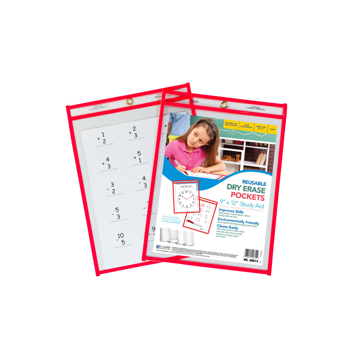 Reusable Dry Erase Pockets help to improve students' skills. Anyone can easily practice math problems, letters, writing skills and more.