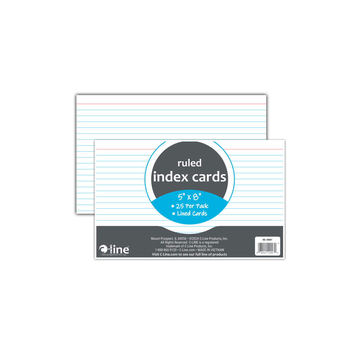 Keep notes and lists organized. These white index cards are ruled on one side and blank on the other. Use the ruled side for text, sentences or notes, and the blank side for pictures, words and more! They are a compact way to record and store information. Each pack contains 25 white cards.