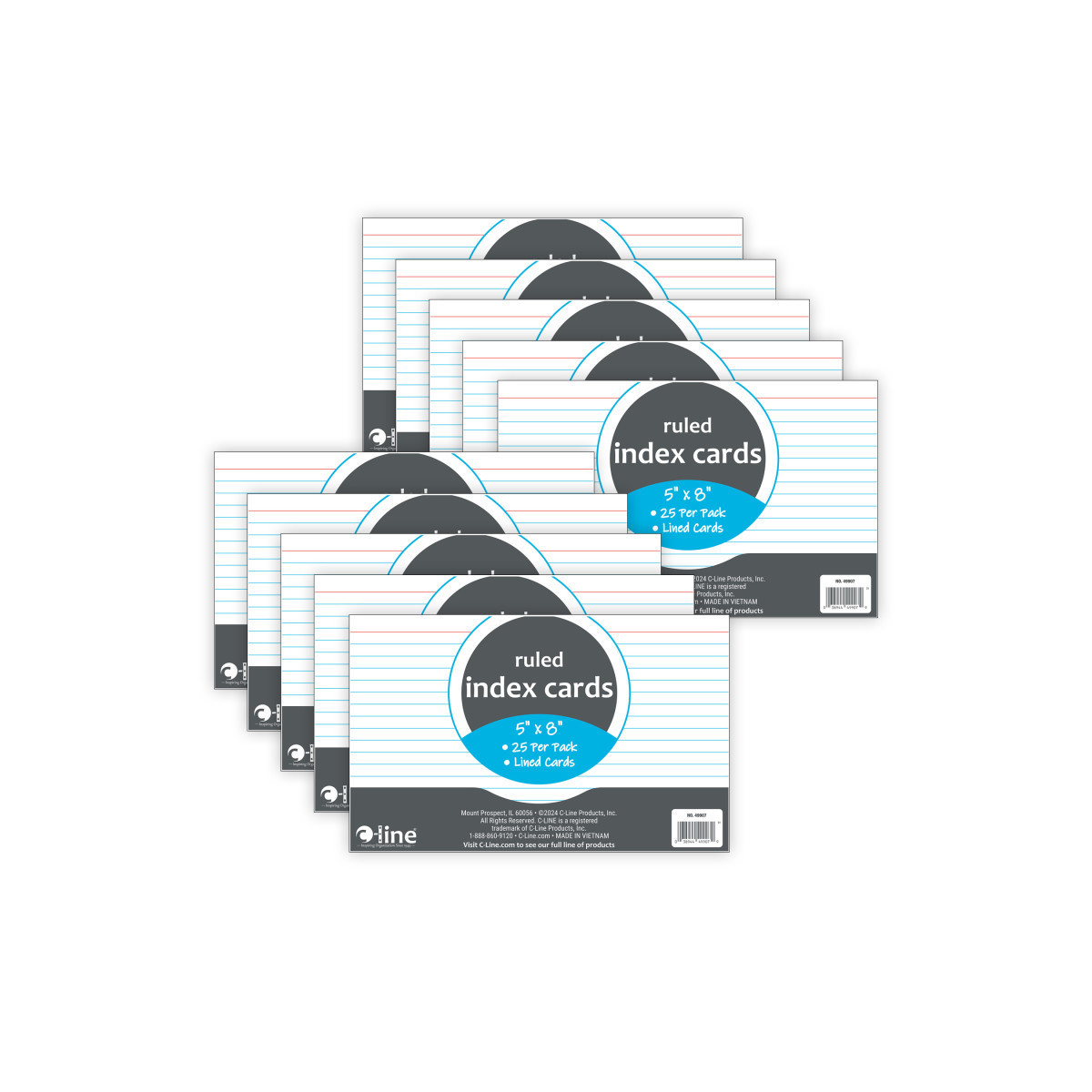 Keep notes and lists organized. These white index cards are ruled on one side and blank on the other. Use the ruled side for text, sentences or notes, and the blank side for pictures, words and more! They are a compact way to record and store information. Each pack contains 25 white cards. Sold as 10 packs for a total of 250 index cards.