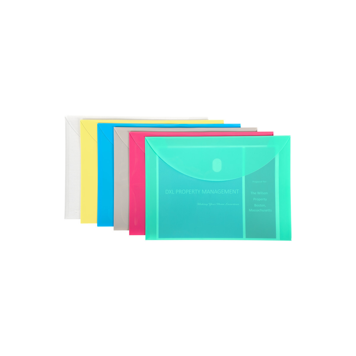 Great for interoffice communication, the envelopes make it easy to pass documents between individuals without damaging the pages inside. The translucent cover allows the contents to be viewed from the outside, so the envelope can easily be identified. Poly XL Reusable Envelopes with a hook and loop closure are made from acid-free polypropylene. For 11 x 8 1/2 document storage. Side Loading. Sold individually in assorted Tropic Tones colors: Seaside Blue, Sunny Yellow, Seafoam Green, Sunset Red, Sandy Gray and Clear (no color choice).