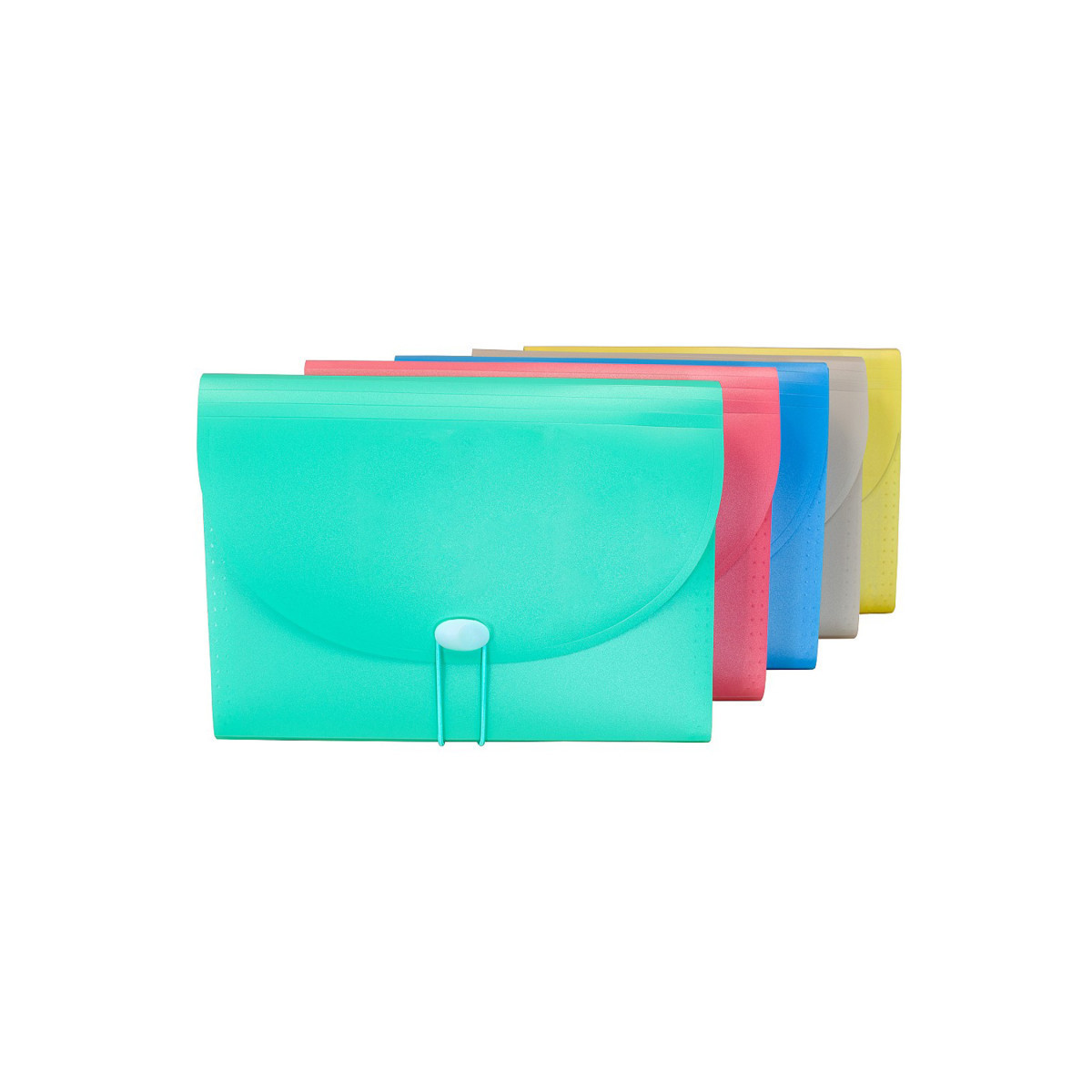 Letter size expanding file is made of durable, archival quality polypropylene. For 11 x 8 ½ document storage. Includes preprinted tab inserts and button and elastic closure. 7-pocket/6-tab. Assorted colors include Seaside Blue, Sunny Yellow, Seafoam Green, Sunset Red, and Sandy Gray.