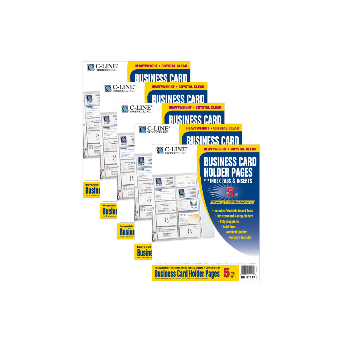 Don't waste time hunting for unorganized business cards; keep contact information easily accessible. Heavyweight polypropylene with a reinforced binding edge hold your important business cards for easy reference while at the office or on the road. Pages include index tabs with inkjet/laser inserts to help you organize business cards. Free, downloadable templates. Each pack includes 5 pages business card holders. Sold as 5 packs for a total of 25 business card holder pages.