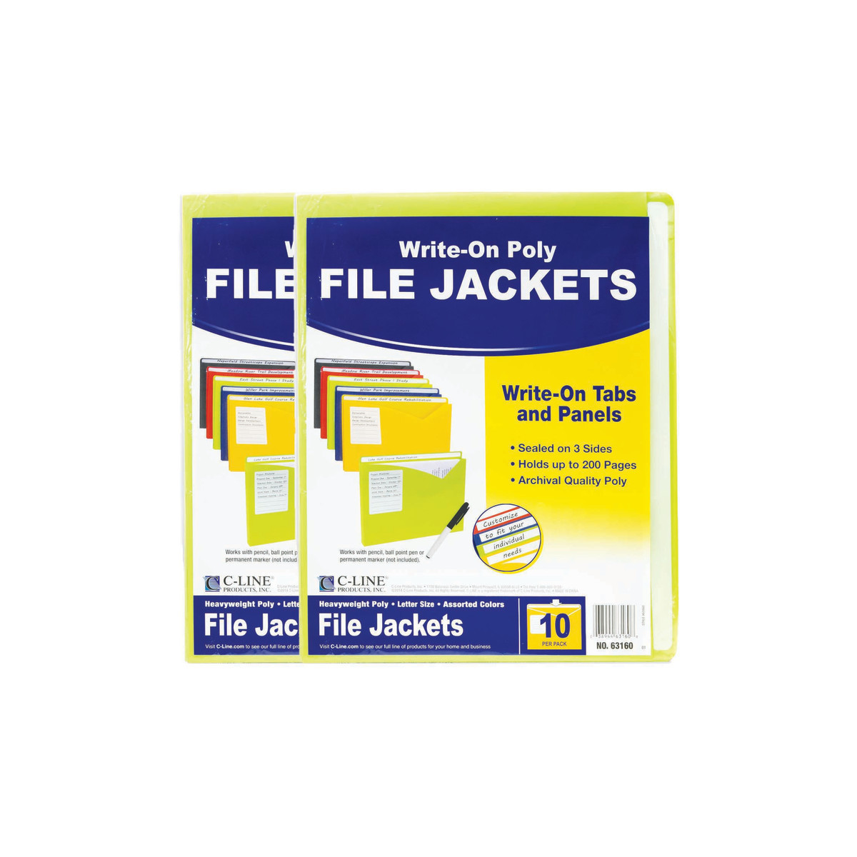 Add some color to your office files with these unique file jackets. The write-on expanding file jackets help you divide, organize and color code projects. Designer v-cut front provides easy access to documents. Featured write-on areas make it easy to provide details regarding the contents of the file jacket. The full-length tab and lined front panel area feature write-on technology for easy identification and organization of folder contents. Works with pencil, ball point pen or permanent marker. Sealed on three sides with 1 inch expansion. Letter size. Acid-free polypropylene. Assortment includes amber orange, lime green, charcoal gray, raspberry red, steel blue. Each pack includes 10 pockets. Sold as 2 packs for a total of 20 pockets.
