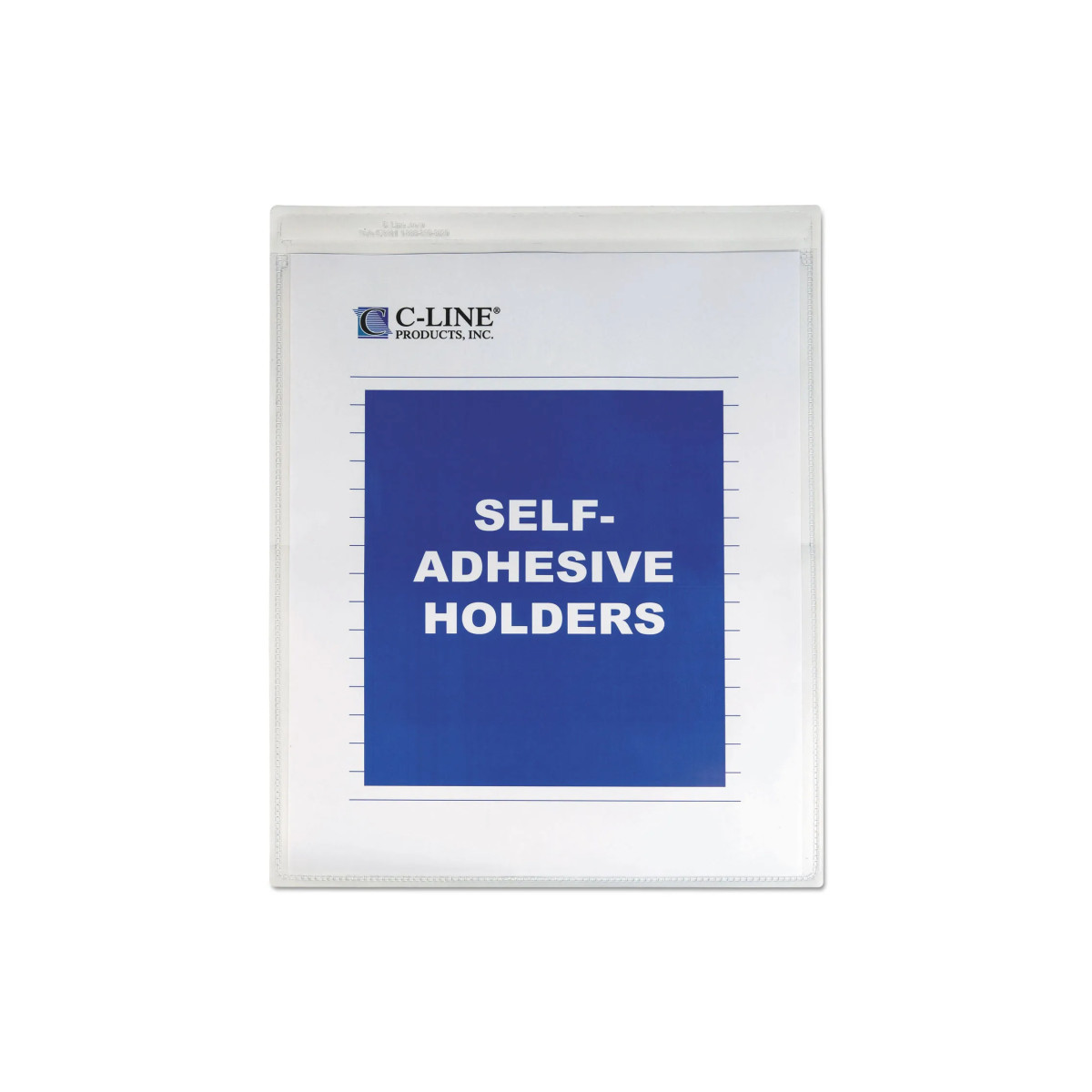 Self-adhesive PVC-free poly holders stick wherever they are needed. Clear, heavyweight holders with non-rip seams attach to any dry, clean, flat surface. Ideal for convenient storage of instructions or service records on office equipment. Unlimited uses for these adaptable products. Measures 9" x 12", Box of 50.