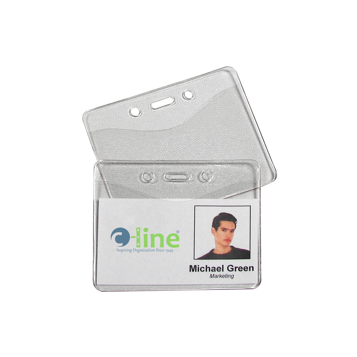 Store and protect work IDs or business cards with the heavy duty, vinyl holders. The slot/chain holes can be used to create a hanging badge, if necessary. Store data/credit card size badges (2 3/8 x 3 3/8) in these heavy duty vinyl holders. Textured back keeps cards from sticking. Box of 100.