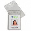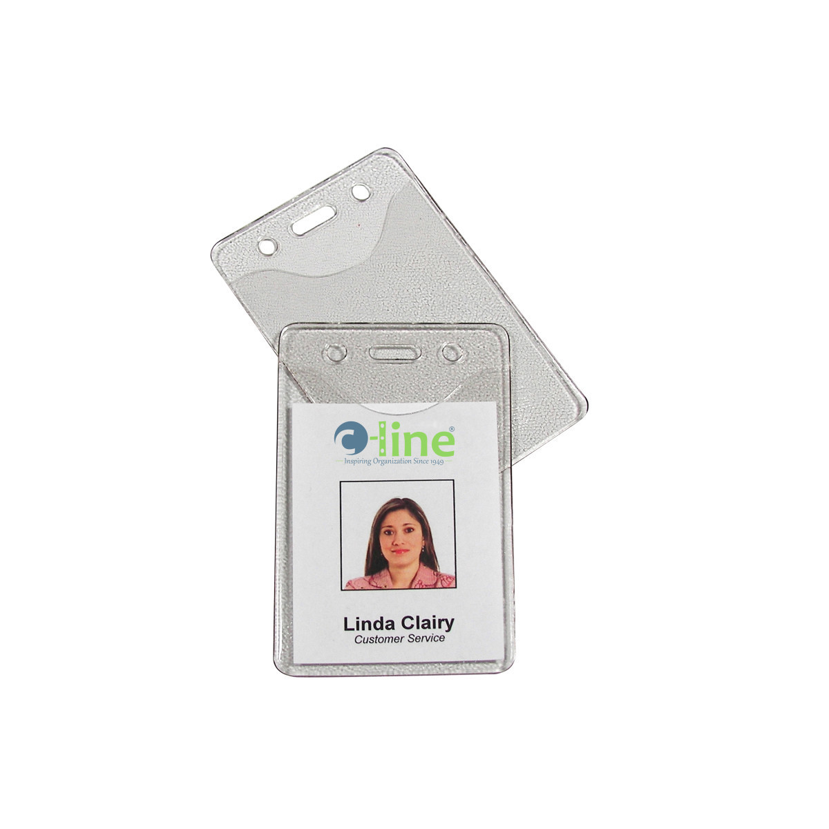 Store and protect work IDs or business cards with the heavy duty, vinyl holders. The slot/chain holes can be used to create a hanging badge, if necessary. Store data/credit card size badges (2 3/8 x 3 3/8) in these heavy duty vinyl holders. Textured back keeps cards from sticking. Box of 100.