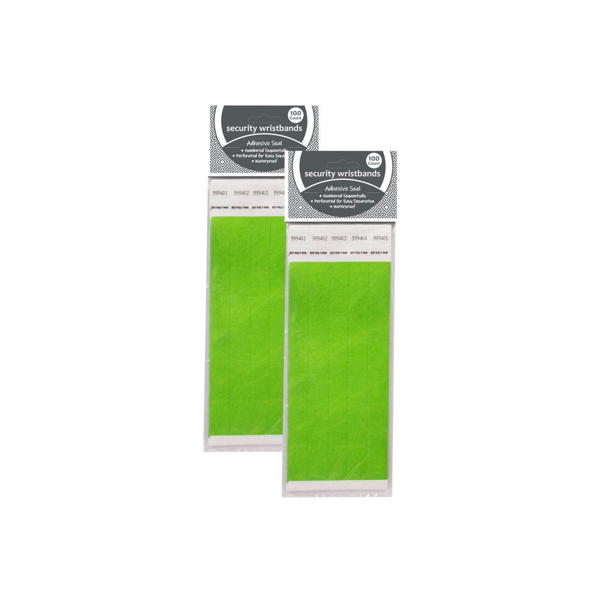Green; 100 per pack, sold as 2 packs, 200 wristbands total