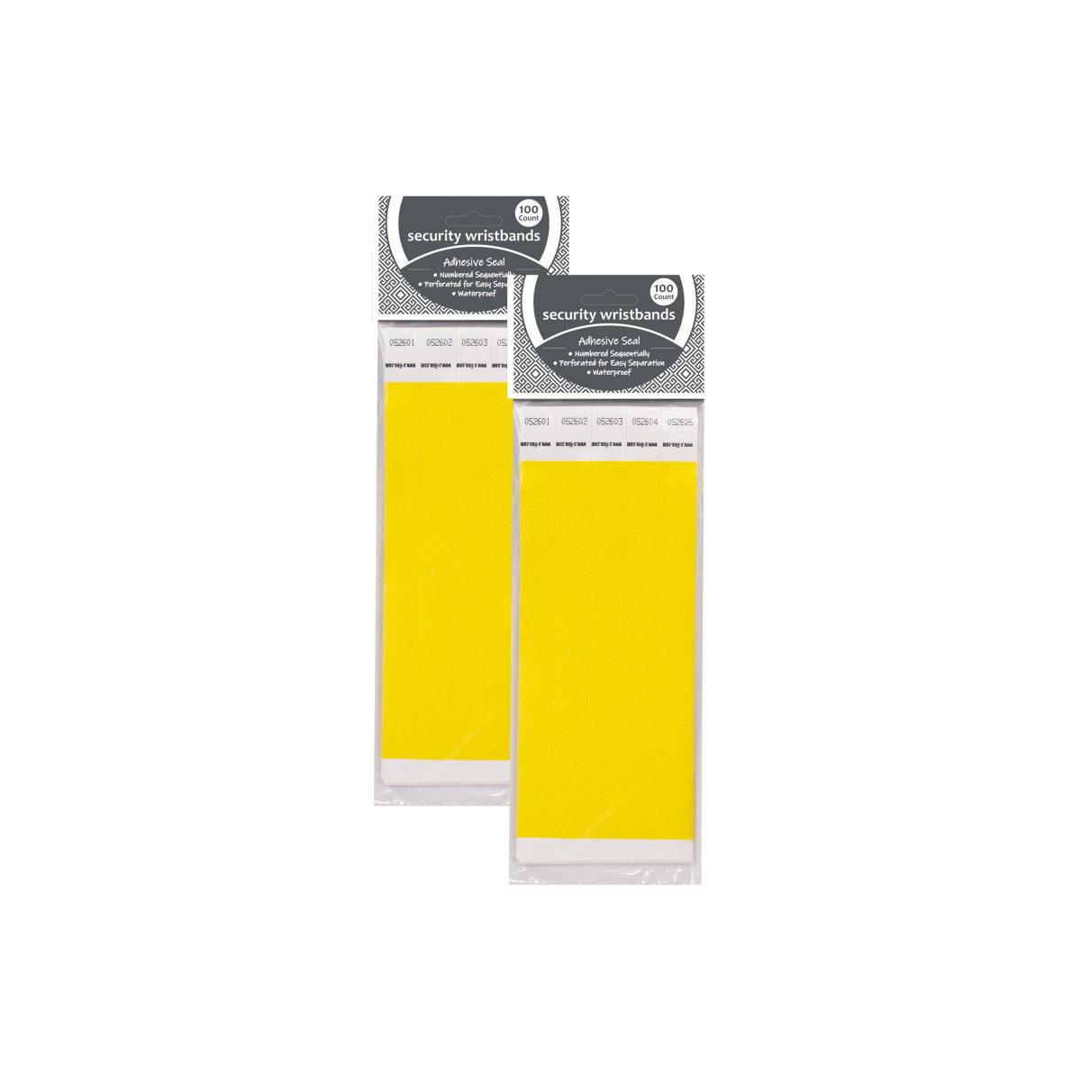 Yellow; 100 per pack, sold as 2 packs, 200 wristbands total