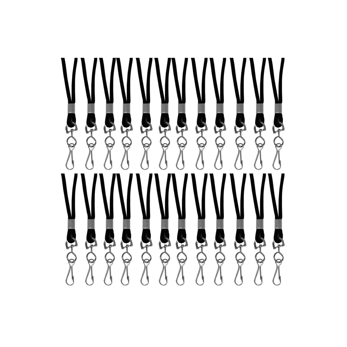 This classic style features round woven, nylon material, which proves to be comfortable when worn around the neck. The metal hook securely attaches the ID badge to the lanyard, allowing the badge to be displayed. Durable lanyards allow for the prominent display of badges and ID cards without damaging clothing. Round woven, nylon material with swivel hook attachment. Measures 36" long. Black. Pack of 24.