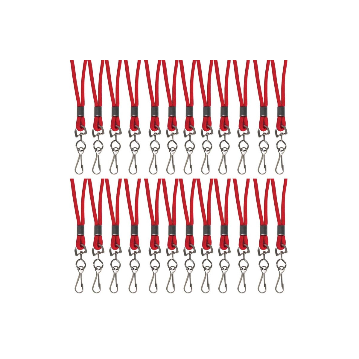 This classic style features round woven, nylon material, which proves to be comfortable when worn around the neck. The metal hook securely attaches the ID badge to the lanyard, allowing the badge to be displayed. Durable lanyards allow for the prominent display of badges and ID cards without damaging clothing. Round woven, nylon material with swivel hook attachment. Measures 36" long. Red. Pack of 24.