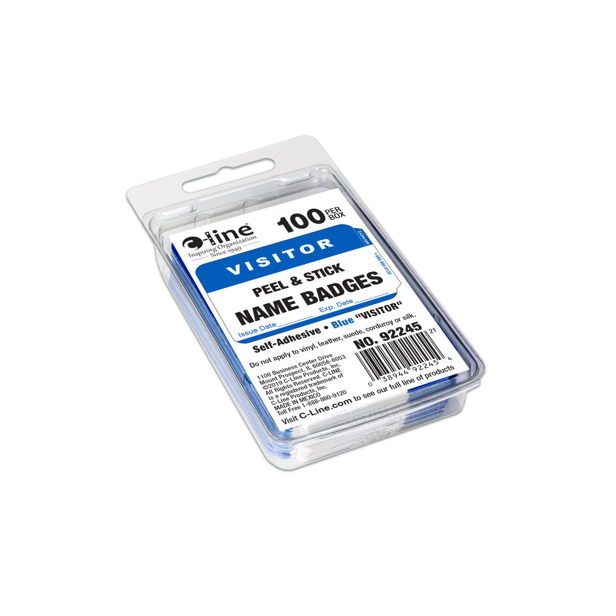 Unique tabbed edge makes VISITOR badge easy to peel off backing paper and apply