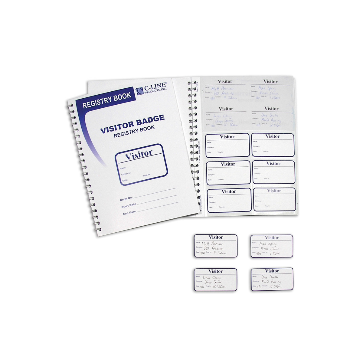 When the badge is filled out, the visitor names are entered in registry book, providing a written record of their visit to your facility