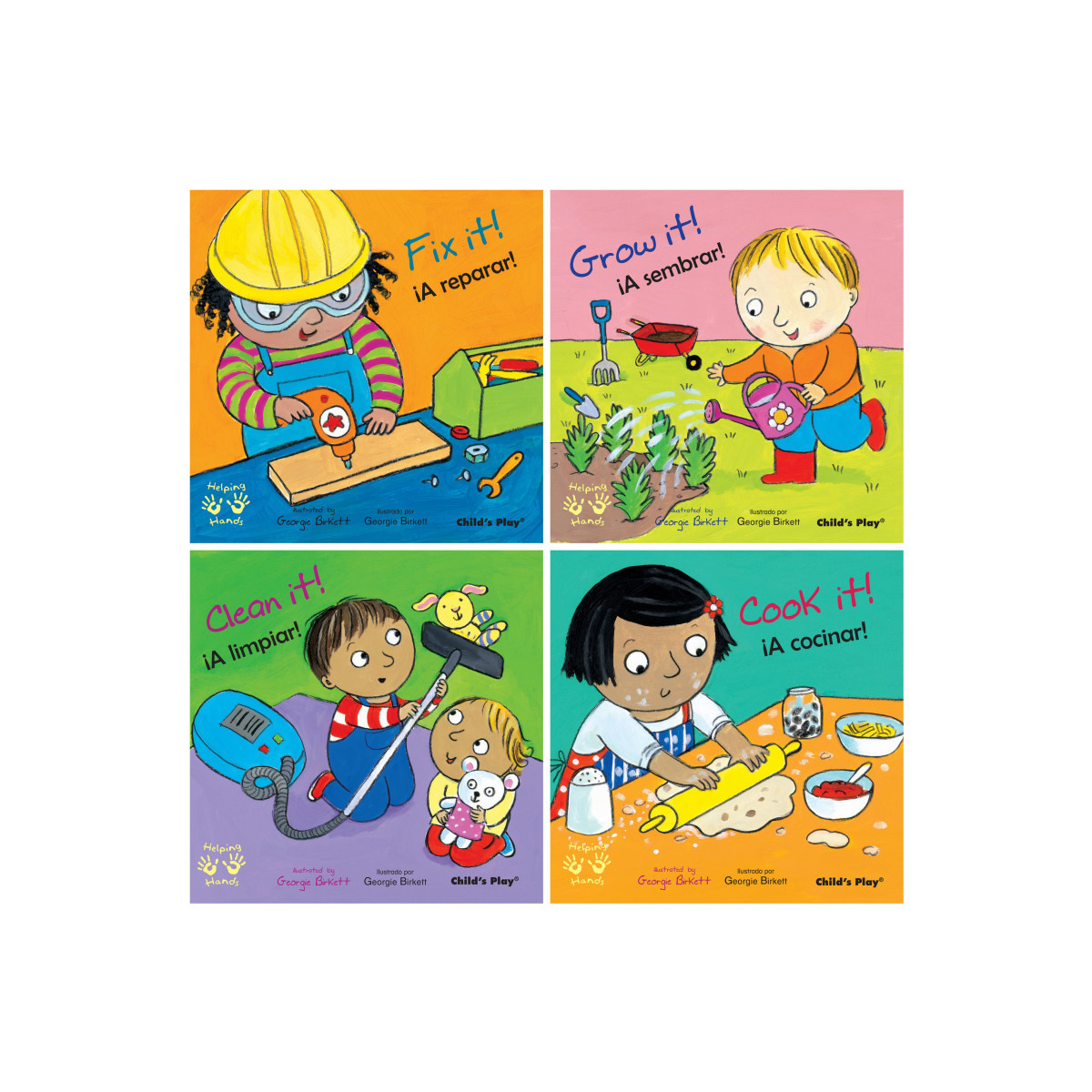 Helping with real tasks is a natural progression from pretend play, and is a crucial stage in a child's development. Achieving a shared goal encourages a sense of responsibility, and develops many skills useful in later life. Simple conversational text and lively illustrations are carefully designed to encourage further dialogue between reader and child. 4 English/Spanish titles include: Clean It!/iA limpiar!, Cook It!/iA cocinar!, Grow It!/iA sembrar!, and Fix It!/iA reparar! Each book has 24 pages.