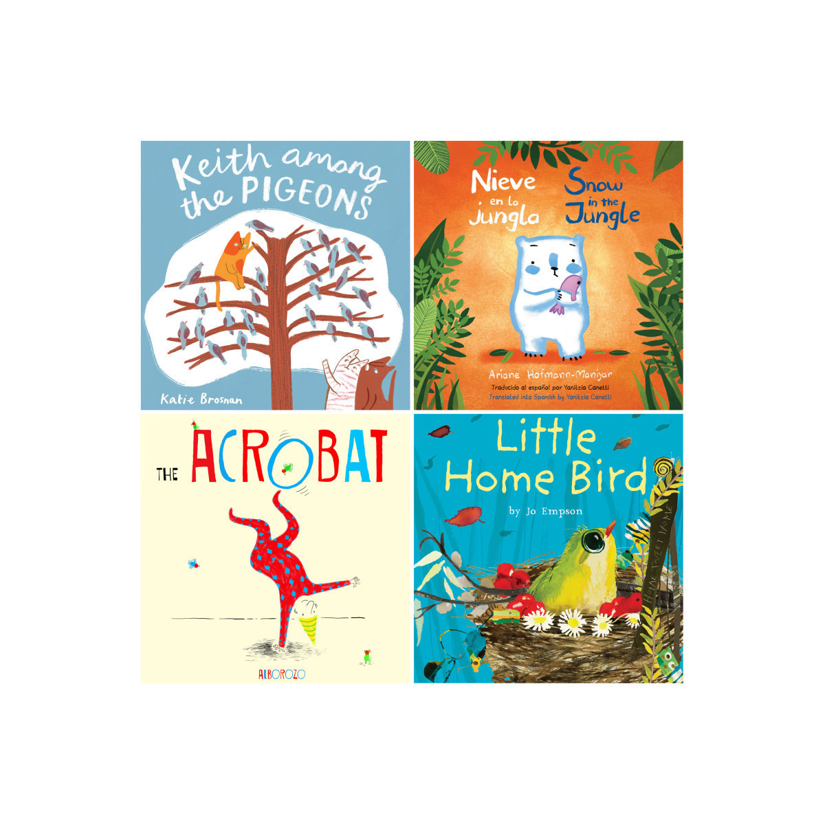 This is a set of books with shared themes of self-esteem and being genuine. The focus is on confidence, identity and personal growth. Where do you fit in? How do you belong? And how does one act? These are important questions that young children need to understand. Finding your way and feeling comfortable with who you are can sometimes be tricky. Understanding differences, learning coping mechanisms, being kind to yourself and others, is what it's all about. 4 Titles include: Keith Among the Pigeons, Little Home Bird, The Acrobat, and Nieve en la junglo/Snow in the Jungle.