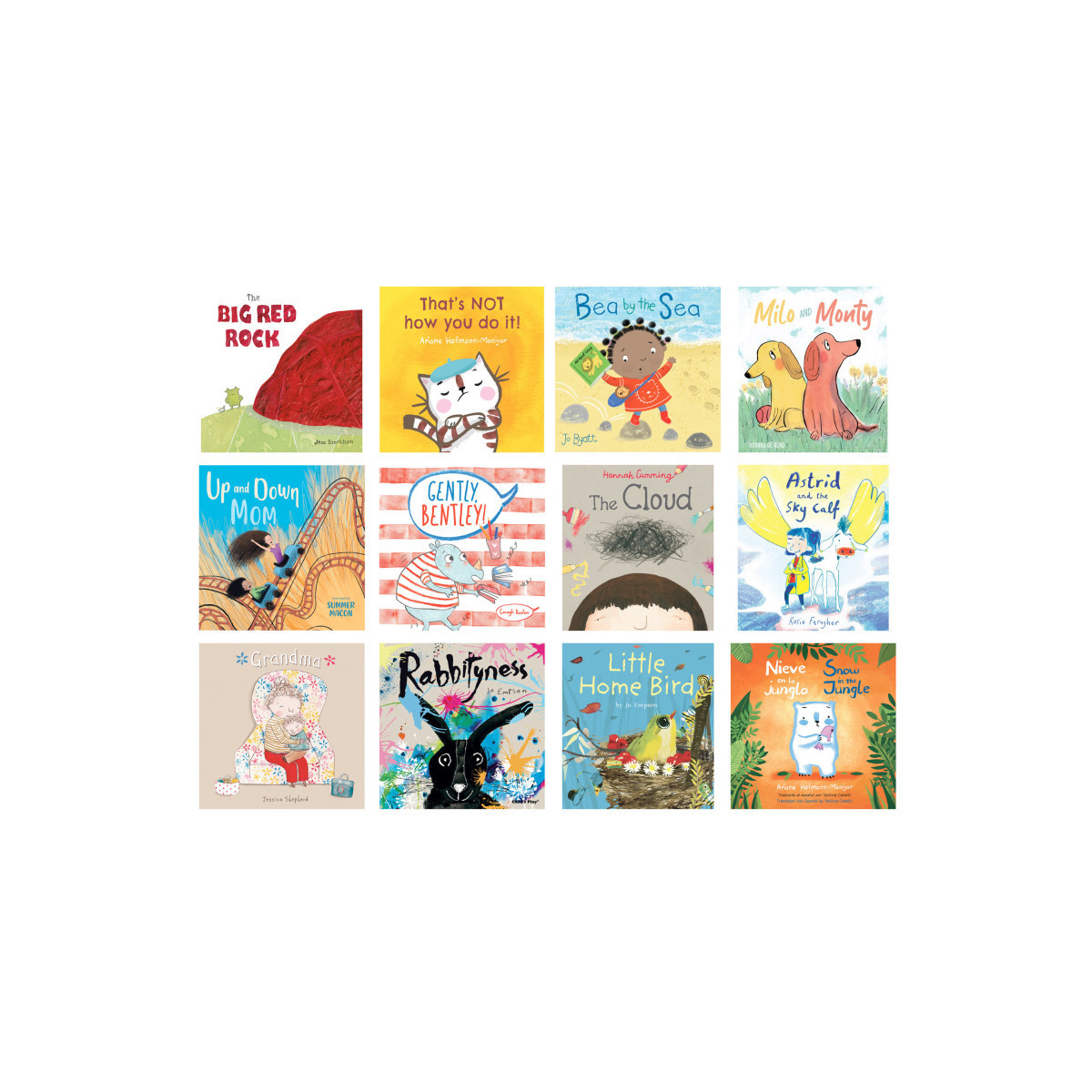 These stories give children an opportunity to understand and ask questions in a safe, open environment. Each book approaches the complex range of mental health issues with sensitivity and child-friendly language. Some stories are frank, about living with mental illness, while others may simply be about characters who display characteristics associated with Autism and ADHD. Each book is 32 pages, geared towards 3-6 year olds. This set includes 12 titles: Big Red Rock, That's NOT How You Do It!, Bea By The Sea, Milo and Monty, Up and Down Mom, Gently Bentley!, The Cloud, Astrid and the Sky Calf, Grandma, Rabbityness, Little Home Bird, and Nieve en la jungla/Snow in the Jungle.