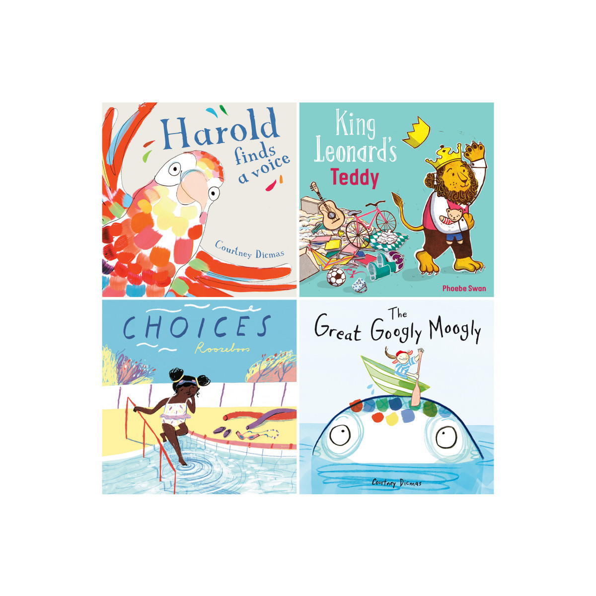 When children are frustrated, and can't seem to get it right, they need encouragement--and sometimes a push to get them going in the right direction. This book set does just that with each story sending a positive message. Independent thought and positive messaging. 4 Titles include: Harold Finds a Voice, The Great Googly Moogly, Choices, and King Leonard's Teddy. Each book has 32 pages.