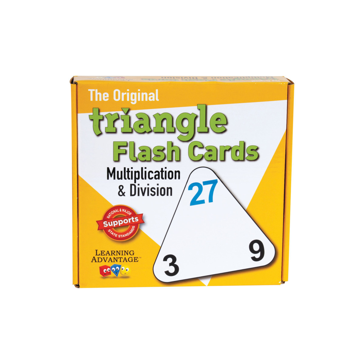 Eliminate memory overload and learn eight math facts per card! Triangle Flash Cards teach the family of facts, showing the relationship between multiplication and division. Example: 8 x 9 = 72, 9 x 8 = 72, 72 / 8 = 9, and 72 / 9 = 8. 120 math facts are shown on 20 cards. 2 players.