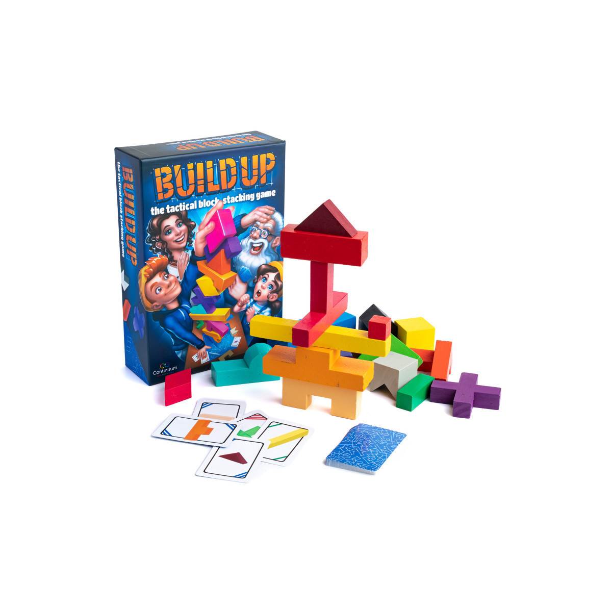 - Family Game Night: Perfect game for families, couples, game night or parties. Everyone loves the suspense in BUILD UP. Game includes 20 Unique Wood Blocks, 20 Block Cards, 4 Action Cards, 1 Starter Card, 2 Rule Cards, and 1 Card Box.