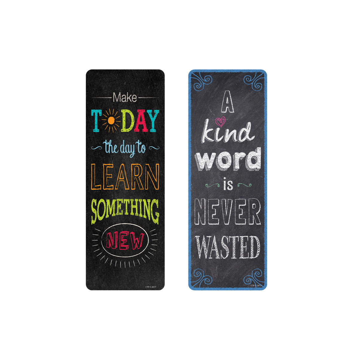 Chalk It Up! Motivational Quotes Bookmarks are a great way to inspire students to learn new things and to be kind to others. These bookmarks feature colorful chalk designs and are perfect to use as classroom incentives, to support character education lessons (including anti-bullying), or to use as giveaways to students of all ages (even college students). Send a positive message about reading and learning with fun bookmarks!