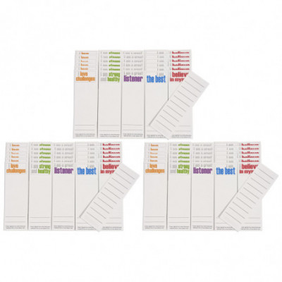 Chalk It Up! Motivational Quotes Bookmarks are a great way to inspire students to learn new things and to be kind to others. These bookmarks feature colorful chalk designs and are perfect to use as classroom incentives, to support character education lessons (including anti-bullying), or to use as giveaways to students of all ages (even college students). Send a positive message about reading and learning with fun bookmarks!
