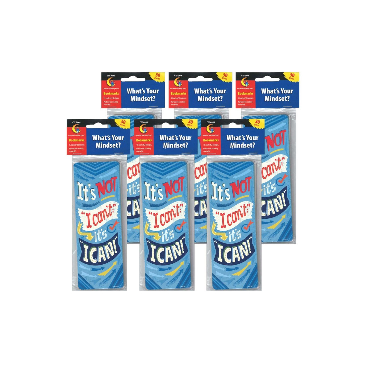 Bookmark 1: It's not, "I can't;" it's "I can!" Bookmark 2: My brain is like a muscle. When I exercise it, it gets stronger. Bookmarks measures approximately 2.5" x 7". Each pack includes 30 bookmarks, 15 each of 2 designs. Sold as 6 packs for a total of 180 bookmarks.