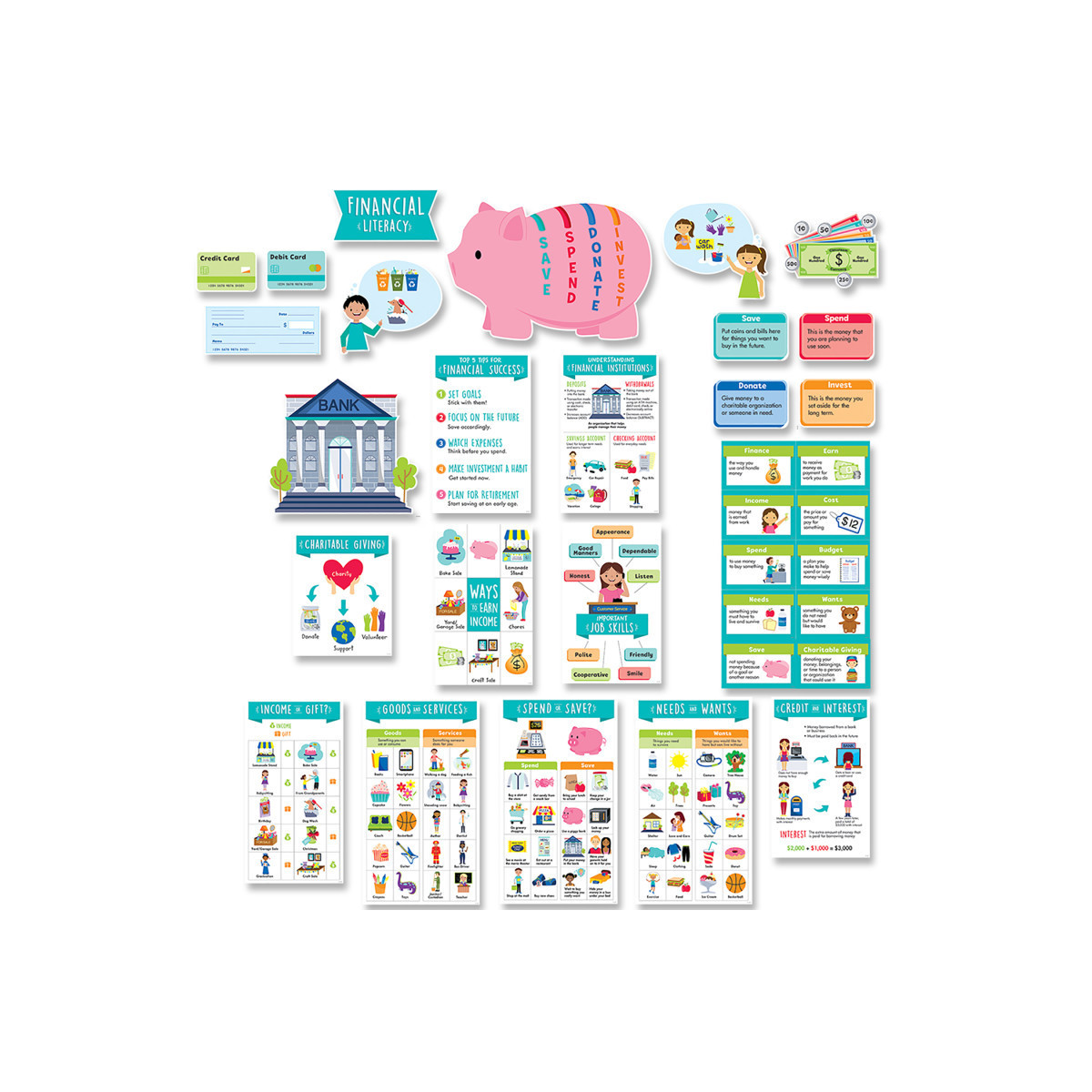 Help students understand financial fundamentals and more with the 33 pieces in this Financial Literacy Bulletin Board.