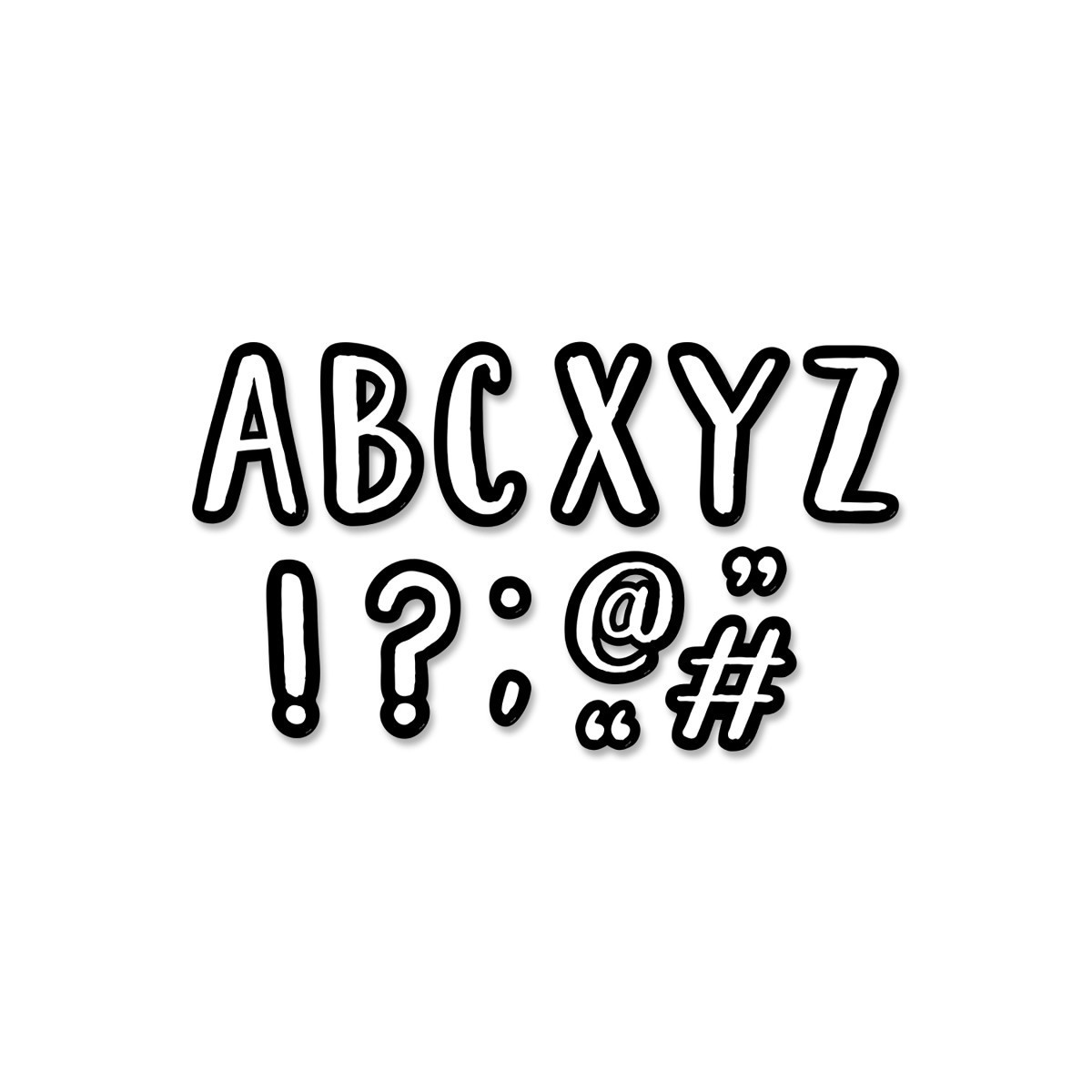 Create big, eye-catching headlines with Café 7" Designer Letters! These script-style punch-out letters are white in the center with a thick black edging, making them highly visible from a distance. This package includes 120 pieces—uppercase letters, punctuation marks, and symbols. The casual, modern design of these punch-out letters makes them versatile for use on any bulletin board or display in a school, office, college dorm, senior living residence, church, or daycare center. Great for party signs, hallways, and other large spaces.