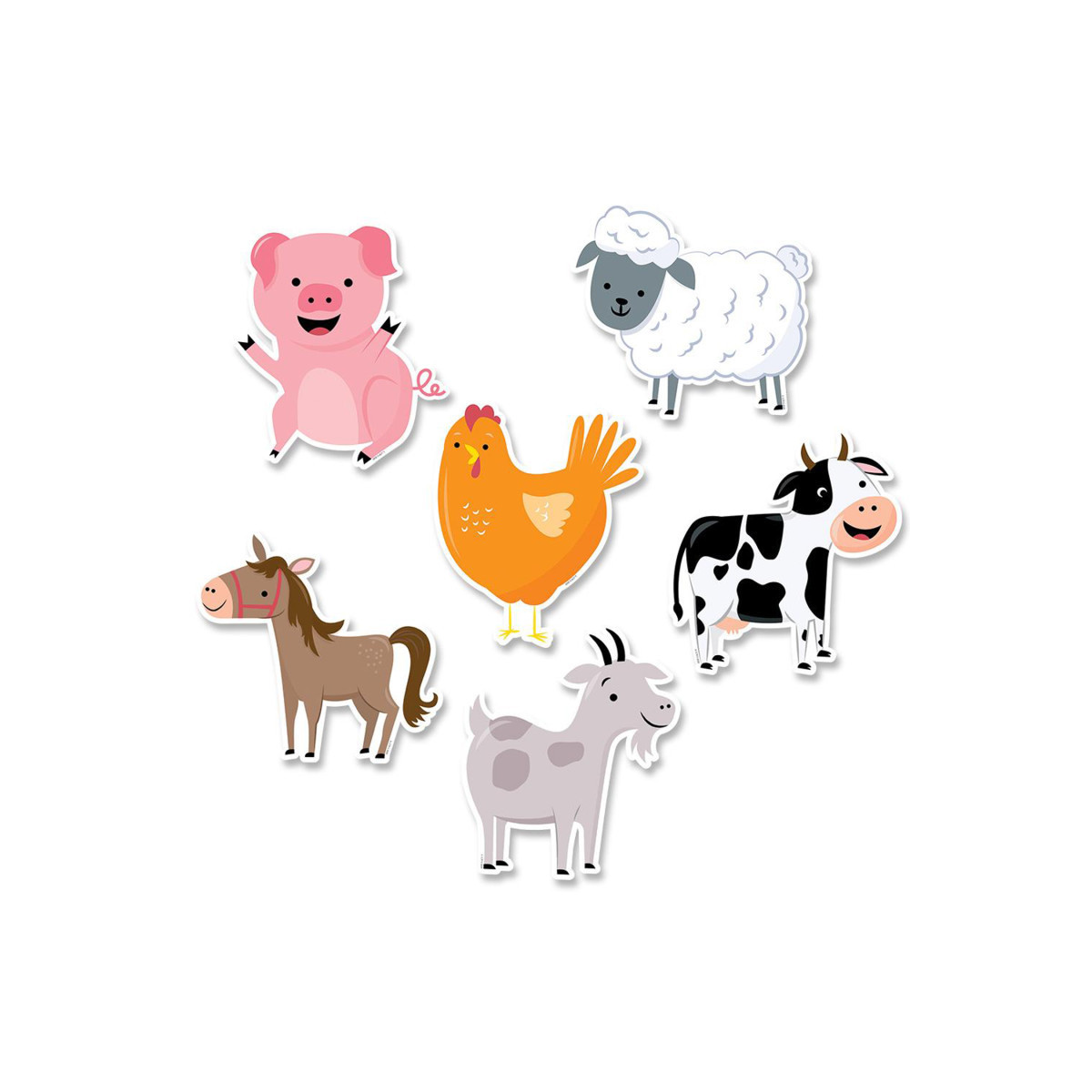 Great for early childhood classrooms, these Farm Friends 6" Designer Cut-Outs include a pig, horse, sheep, cow, goat, and chicken. Farm Friends cut-outs are perfect for use in a variety of classroom displays and themes, including science, plants, animals, and life on the farm. They also make perfect decorations for a child's party.