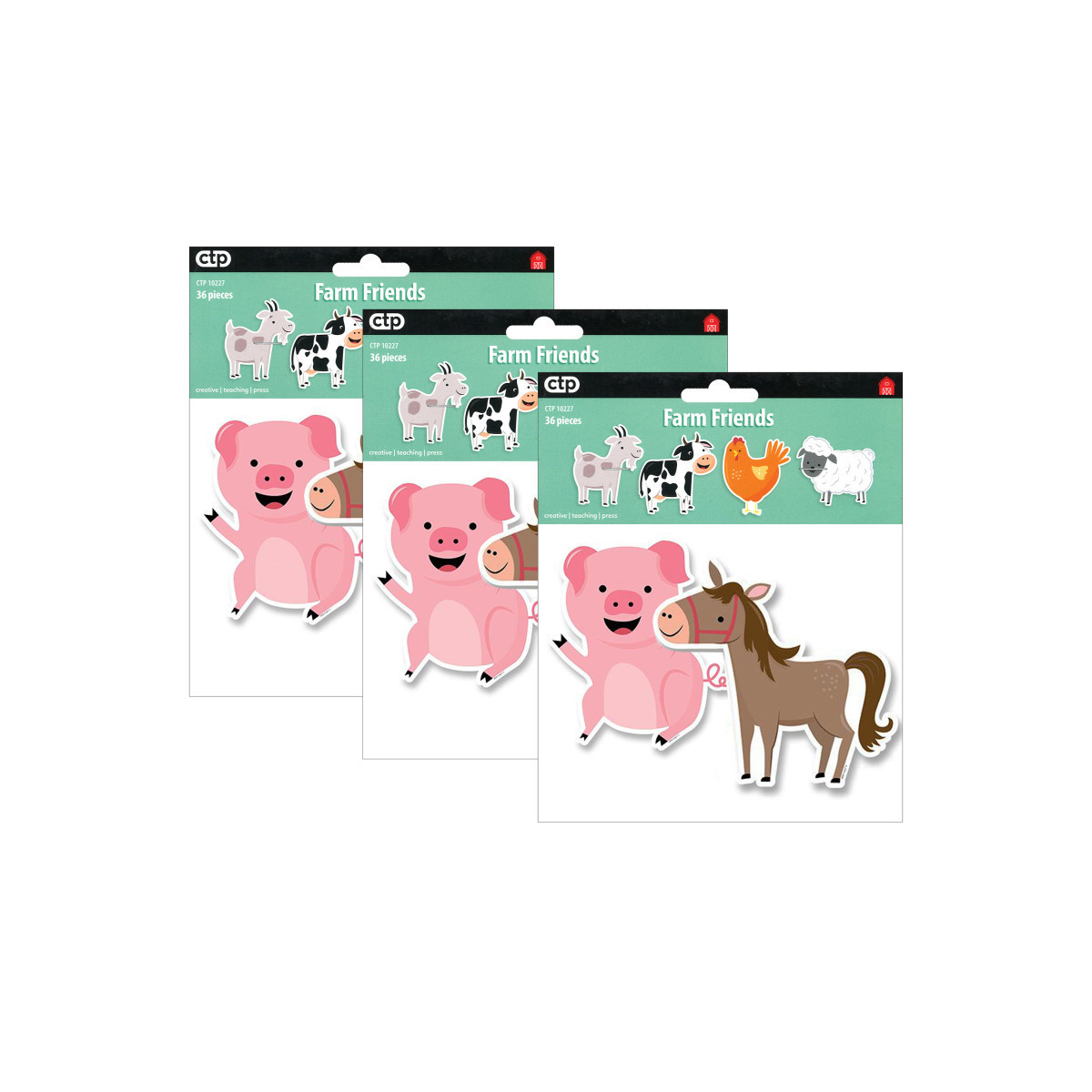 Great for early childhood classrooms, these Farm Friends 6" Designer Cut-Outs include a pig, horse, sheep, cow, goat, and chicken. Farm Friends cut-outs are perfect for use in a variety of classroom displays and themes, including science, plants, animals, and life on the farm. They also make perfect decorations for a child's party.