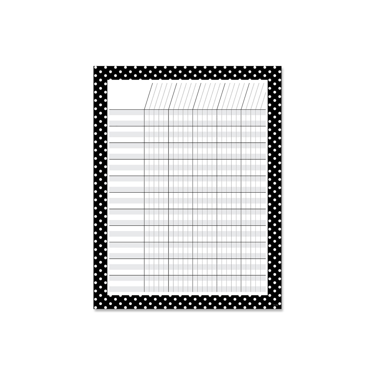 The simple black and white polka dot design on this classroom chart makes it versatile for all ages and many types of uses