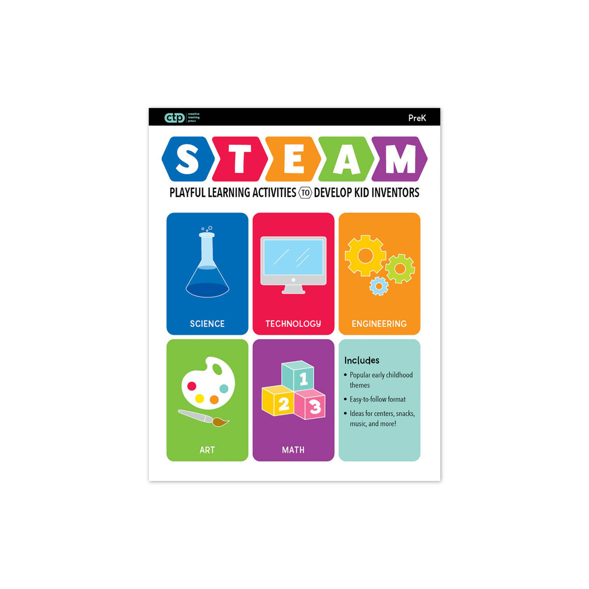 Turn young learners into kid inventors through engaging, problem-solving STEAM design challenge scenarios that will pique children's curiosity about the world around them and how things work. STEAM lessons are centered around popular early childhood themes and grounded in exploration, discovery, and play. The easy-to-follow lesson format can be adapted to meet the needs of your class. It's never too early to start children on the path of STEAM experiences where science, technology, engineering, art and math work together to make learning fun! Measures 8-1/2" x 11". Includes 184 pages.