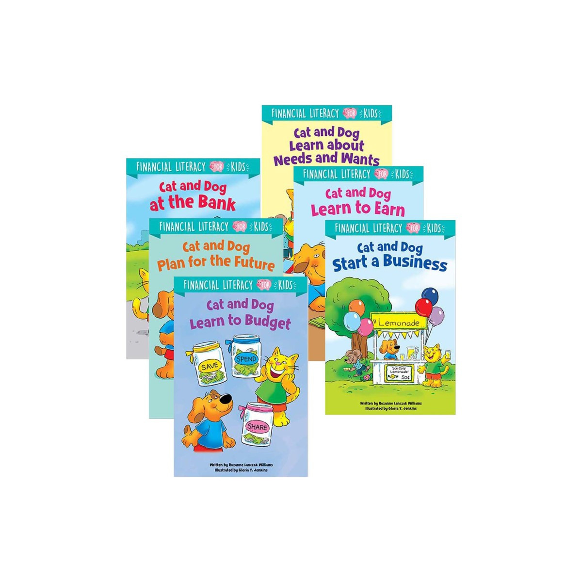 It's never too early to start! Help set young learners on the path to becoming financially responsible with the stories in the Financial Literacy for Kids book series. With the help of loveable characters Cat and Dog, children will become familiar with financial literacy core competencies, such as earning, spending, saving, borrowing, and investing. Story topics will help children become more knowledgeable and improve their understanding of financial products, services, and concepts, empowering them to make informed choices.