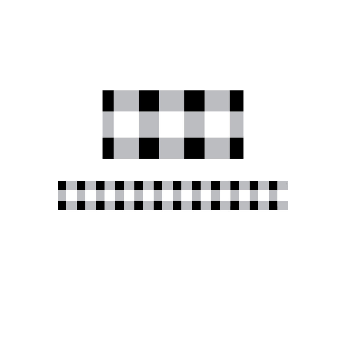 Smart and simple, this Buffalo Check Border features bold black and white contrasting checks. Use it alone to create a classic look or layer it with another border for a unique look. Perfect for use on bulletin boards in a wide variety of classroom, office, and school settings. These EZ borders come in smaller strips, which are easier to manage and store. Each pack comes with enough borders to complete 2 full bulletin boards. Strips measure 3" x 24". Each pack includes 24 strips (48 feet).